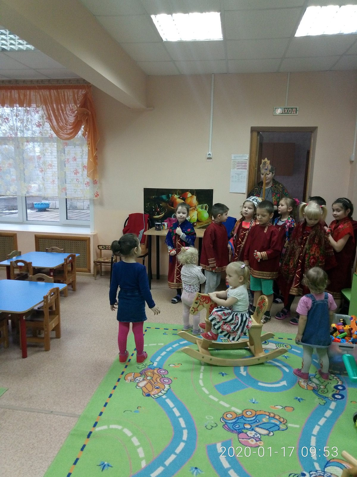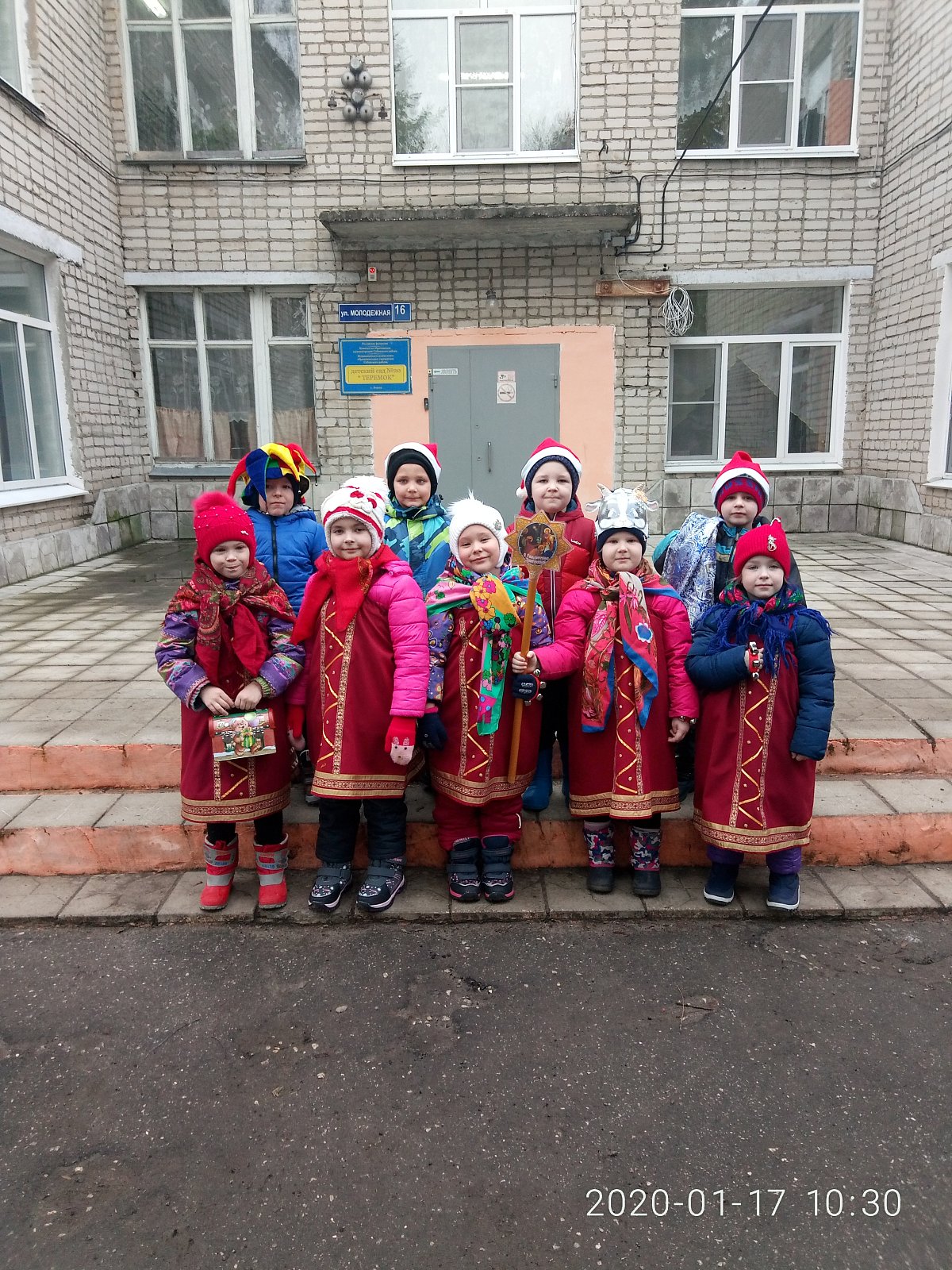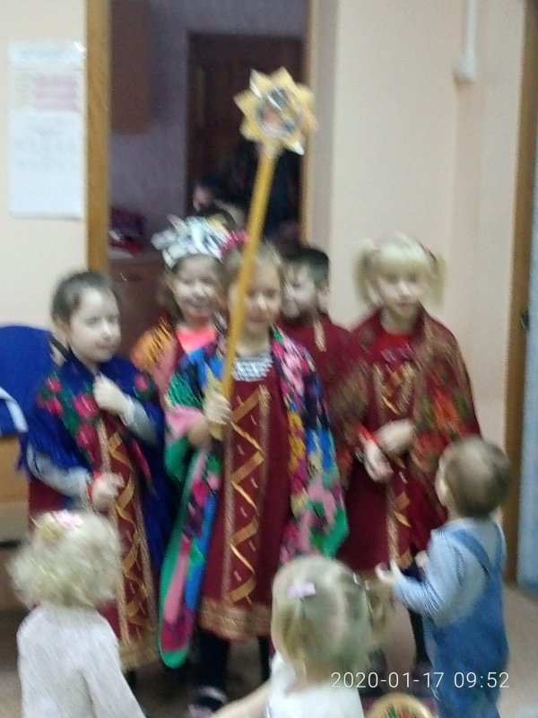 17 января в детском саду прошли колядки. Дошкольники старшей группы вместе с музыкальным руководителем Алексеевой Я.В. подготовили поздравительную программу для всех дошкольников и сотрудников детского сада. Потом ходили коледовать по улицам села и учреждениям. Много подарков принесли коледовщики и поделились со всеми детьми детского сада. Выступающим большая благодарность за подготовленную программу.