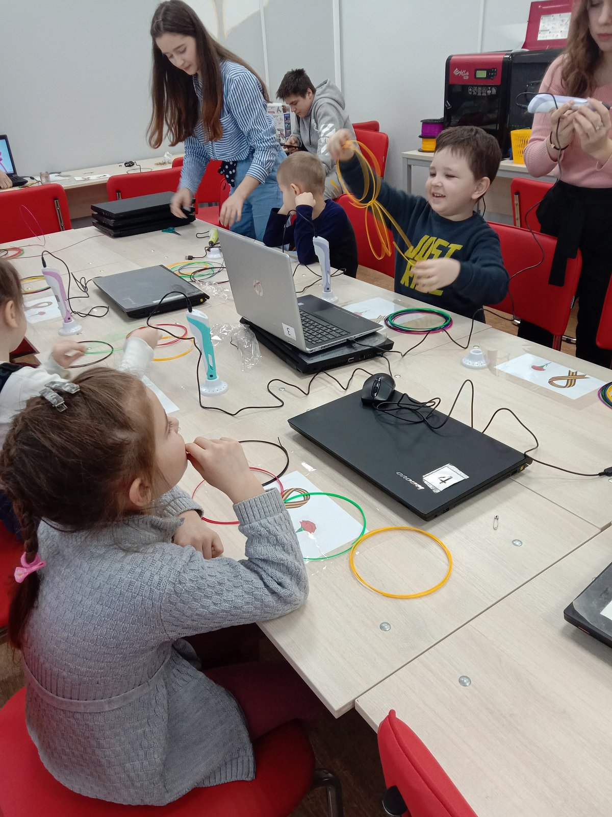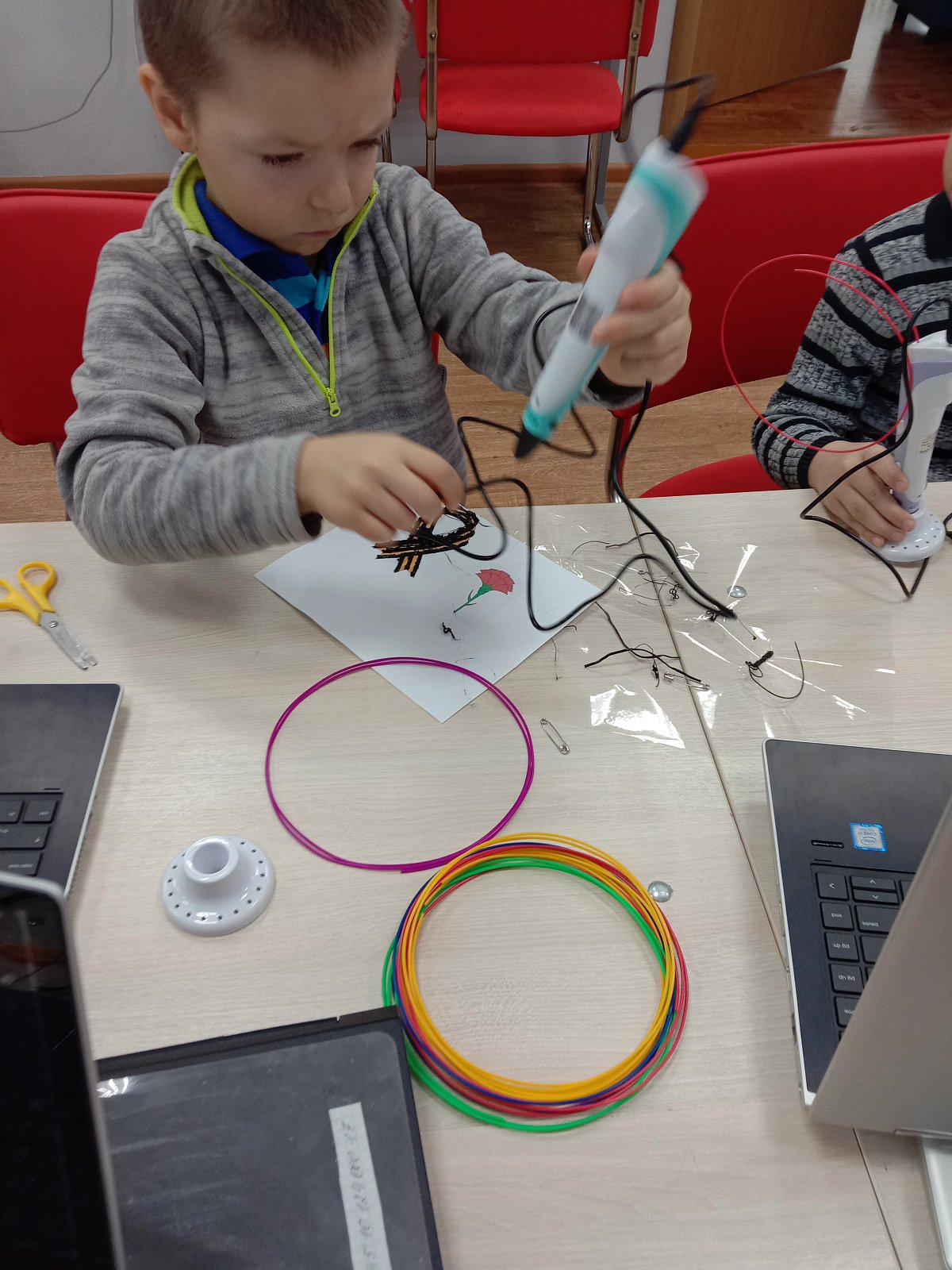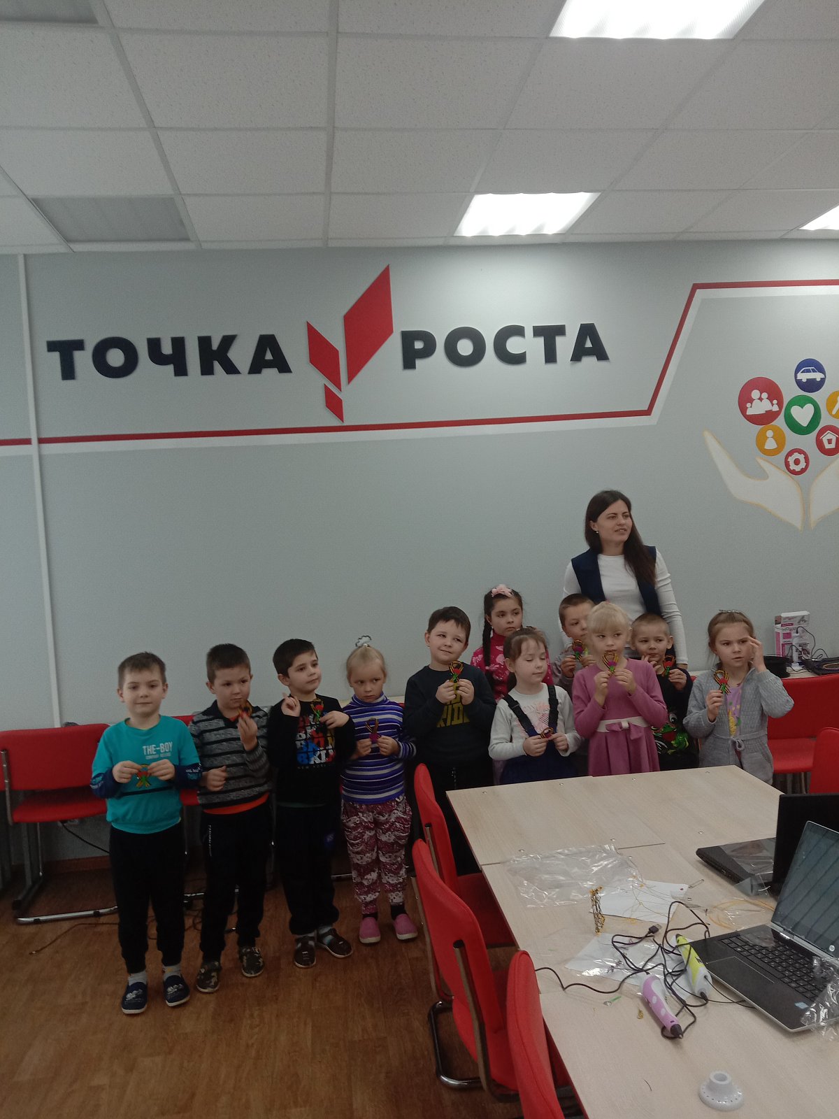 Сегодня дошкольники старшей группы посетили центр образования цифрового и гуманитарного профилей "Точка роста" в МБОУ Воршинская СОШ. Вместе с преподавателем Шикериной Т.С., старшеклассниками изготовили при помощи 3-D ручки Георгиевские ленточки.