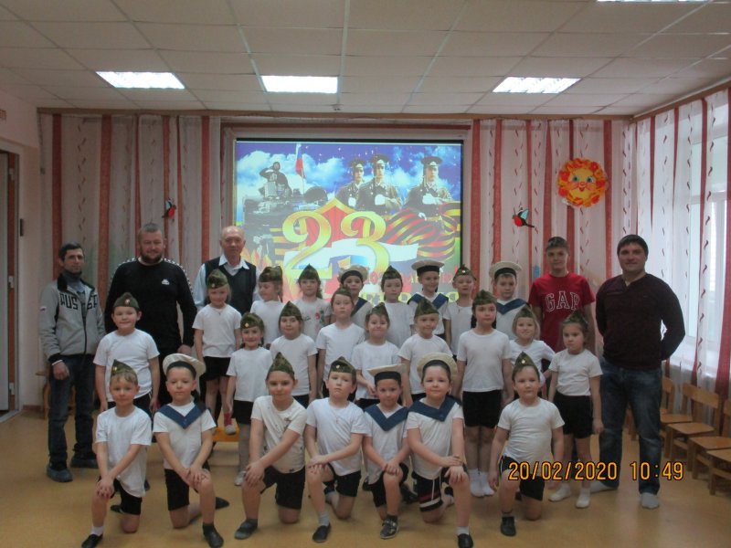 23 ФЕВРАЛЯ - ДЕНЬ ЗАЩИТНИКА ОТЕЧЕСТВА. В канун этого праздники в ДОУ прошли мероприятия, на которые были приглашены папы, дедушки, старшие братья. Интересно было всем и детям, и взрослым. Праздник подготовили и провели инструктор по физической культуре Карпова Е.А. и музыкальный руководитель Алексеева Яна Витальевна.