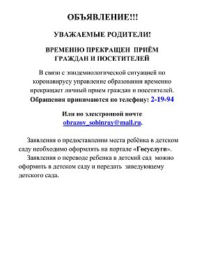 Временно прекращен прием граждан и посетителей.