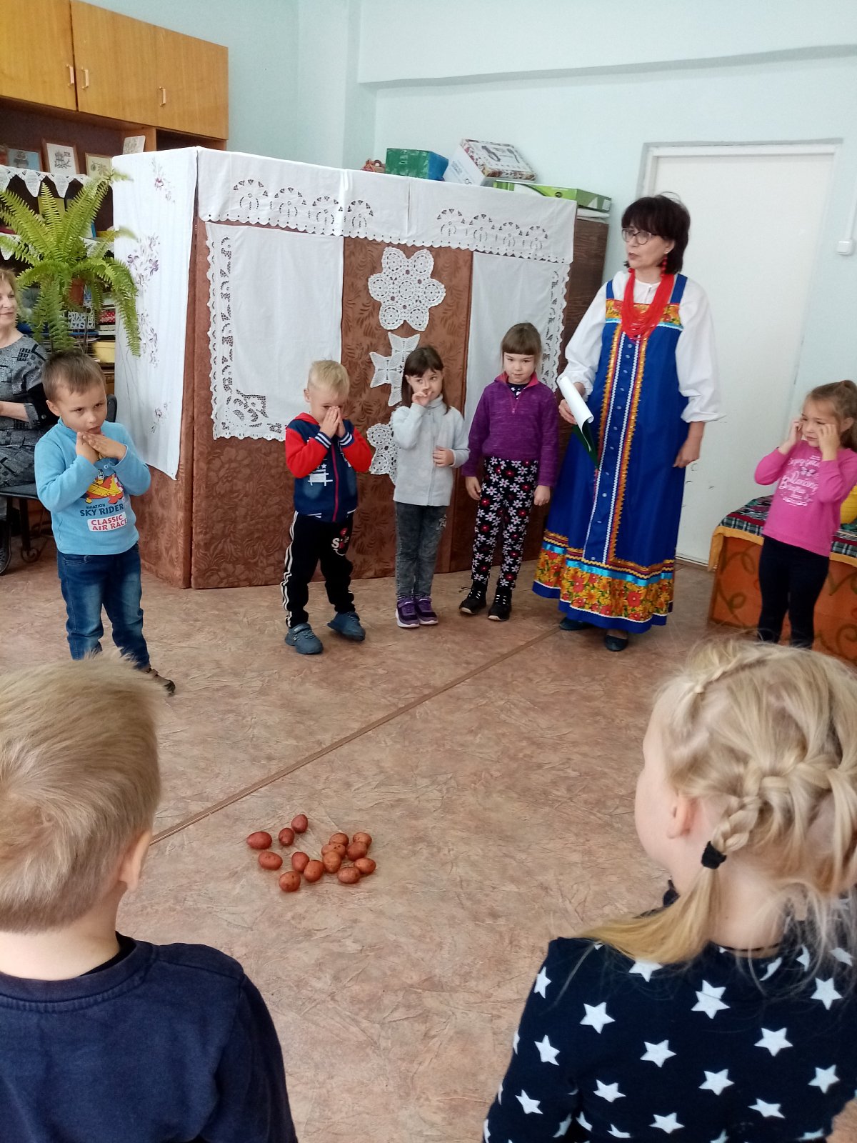 Осень щедро угощает нас спелыми плодами. После окончания осенних работ, люди устраивают праздник Урожая. Сегодня у нас такой праздник прошёл совестно с Воршинским домом культуры. Наши ребята отгадывали загадки, соревновались в конкурсах, играли в веселые игры с картошкой. В заключение праздника было вкусное угощение - запечённая в печке картошечка.Соберём мы всю картошку поскорей.