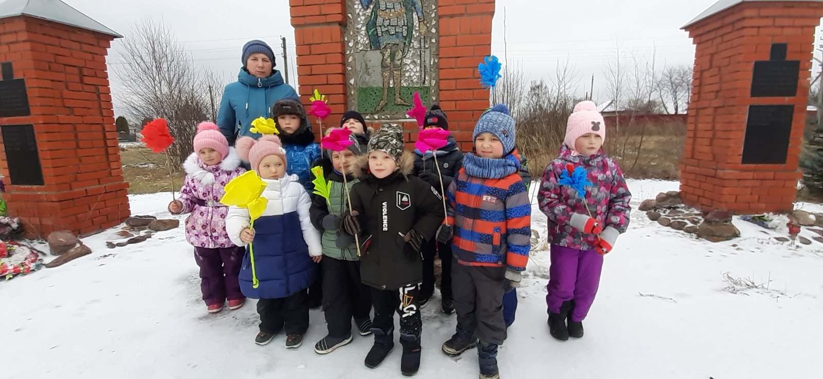 Во время прогулки воспитанники группы «Веселый язычок» возложили цветы у Мемориального комплекса Александра Невского.