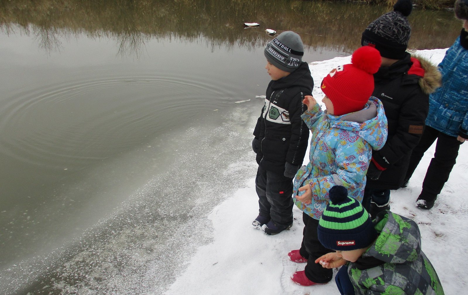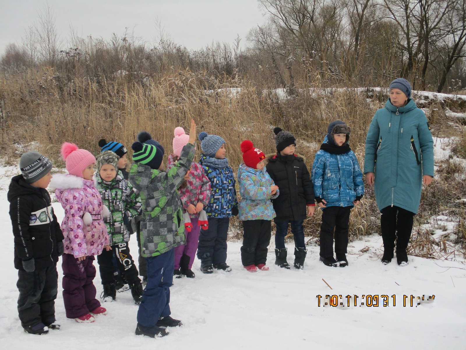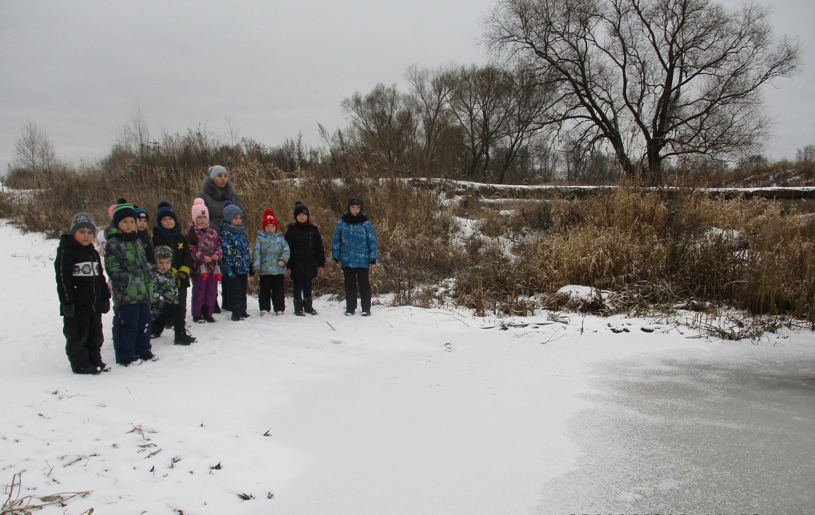 Воспитанники группы детей с ТНР и воспитатель Милованова Т.Н. совершили прогулку в рамках тематической недели « Моё село зимой» на берег реки Ворша. Дети обратили внимание, что берега реки и растения покрыты снегом. Вода в реке замерзает. Вспомнили о безопасности поведения на реке в зимнее время года, можно ли ходить по льду, как вести себя около реки.