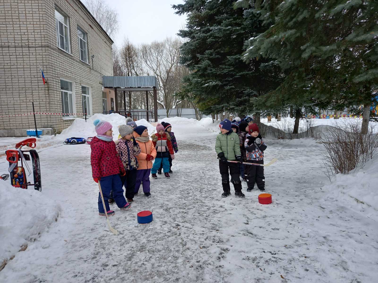 Мы зиму ждали не напрасно:В нашем детском саду прошёл спортивный праздник « Зимушка зима, спортивная пора». Ребята участвовали в эстафетах: «Быстрые снегокаты», «Мы хоккеисты», «Быстрая и меткая лыжня».
