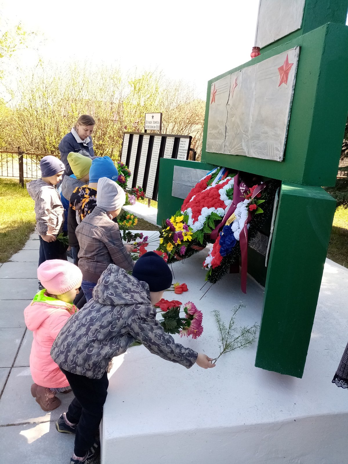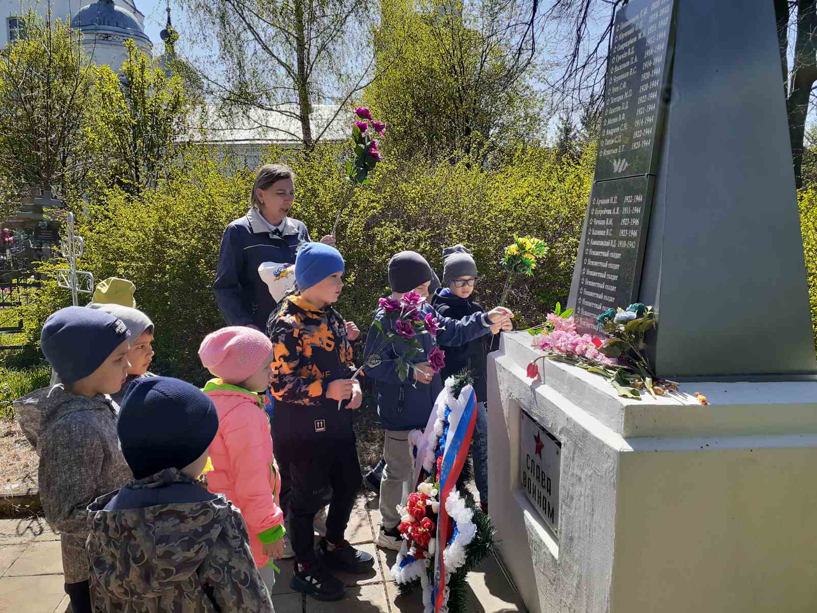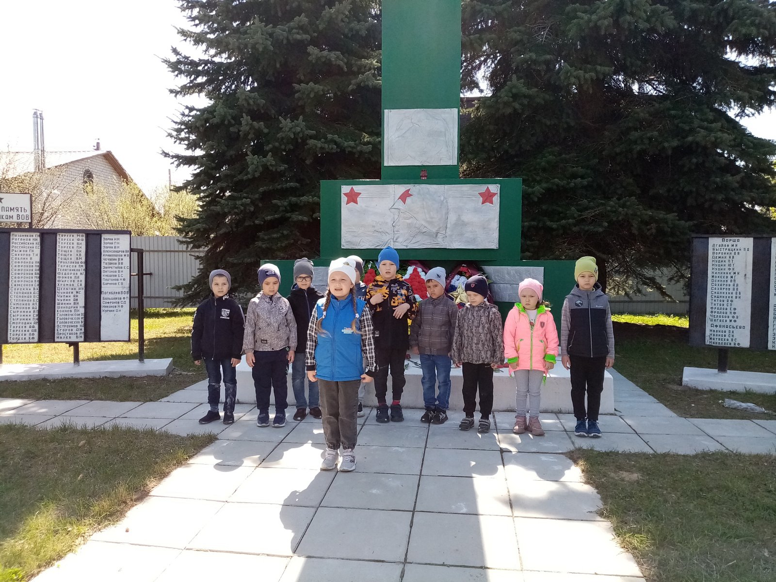 Возложили цветы к монументам, прочитали стихи, почтили память погибших воинов минутой молчания.