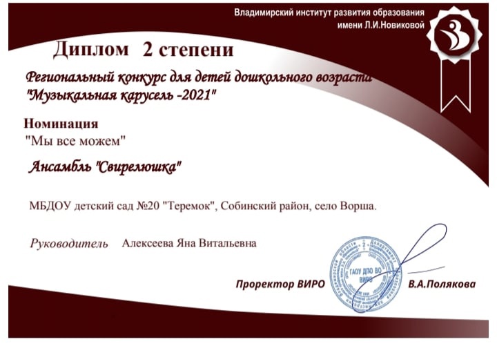 Этот конкурс ежегодно проводит ВИРО им. Л.И. Новиковой для музыкальный руководителей МБДОУ области.