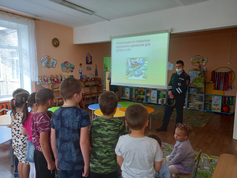 « Гость в группе» - Инспектор Дорожной Патрульной Службы Отделения ГИБДД ОМВД по Собинскому району лейтенант полиции Тимофеев Александр Владимирович был приглашен к воспитанникам средней и старшей групп. При показе презентации наш гость обратил внимание, как правильно родители должны держать ребенка за руку при переходе через проезжую часть, рассказал, как правильно передвигаться по сельским дорогам.