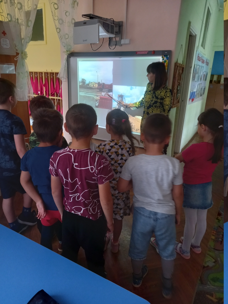 В старшей группе воспитанники познакомились с дорожными знаками, которые используют при строительстве дороги, с дорожной техникой, с историей трассы М7 «Волга».