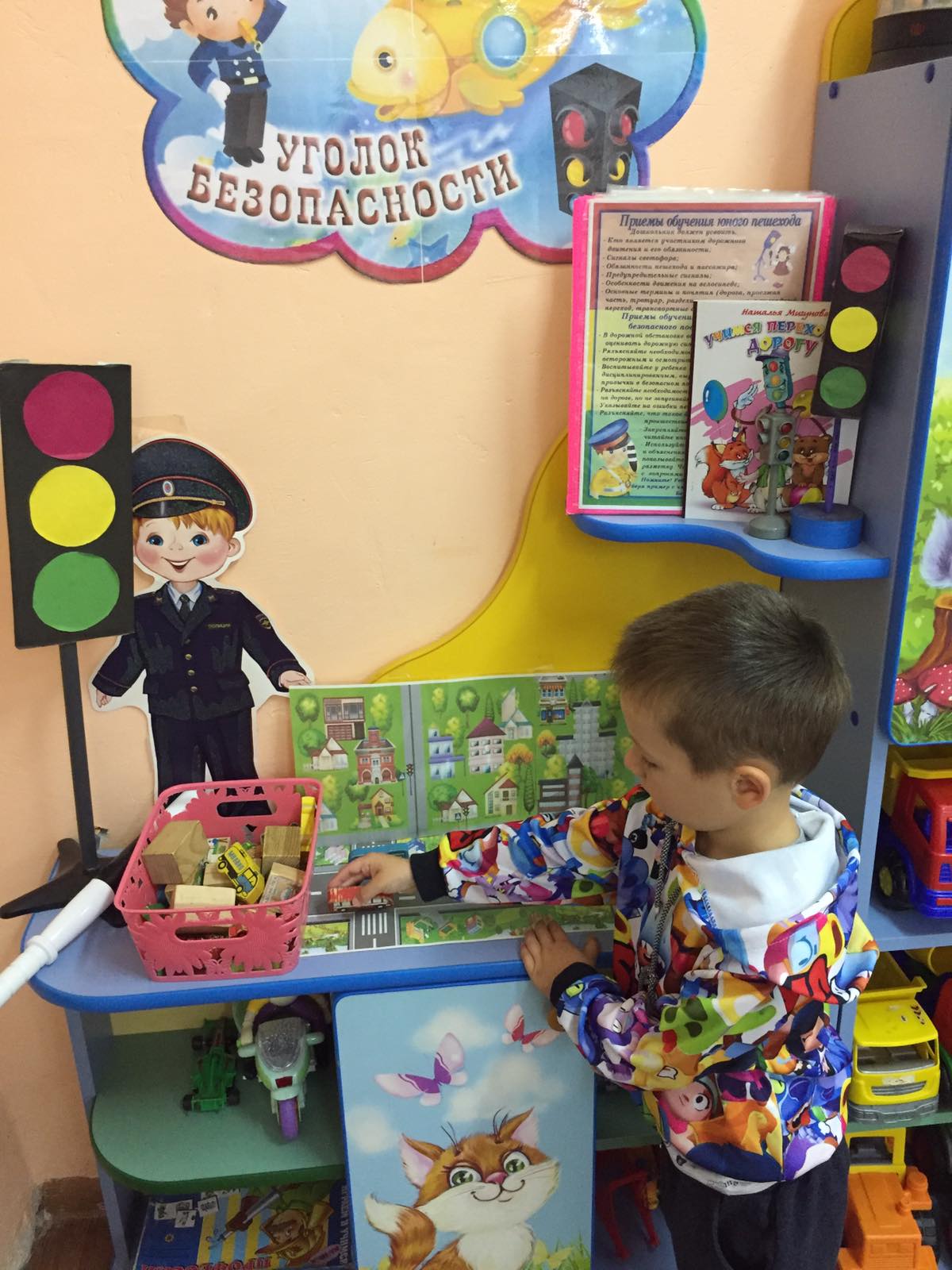 Ребята показали свои знания дорожных знаков и показали инспектору светоотражающие элементы на своей одежде для прогулок.