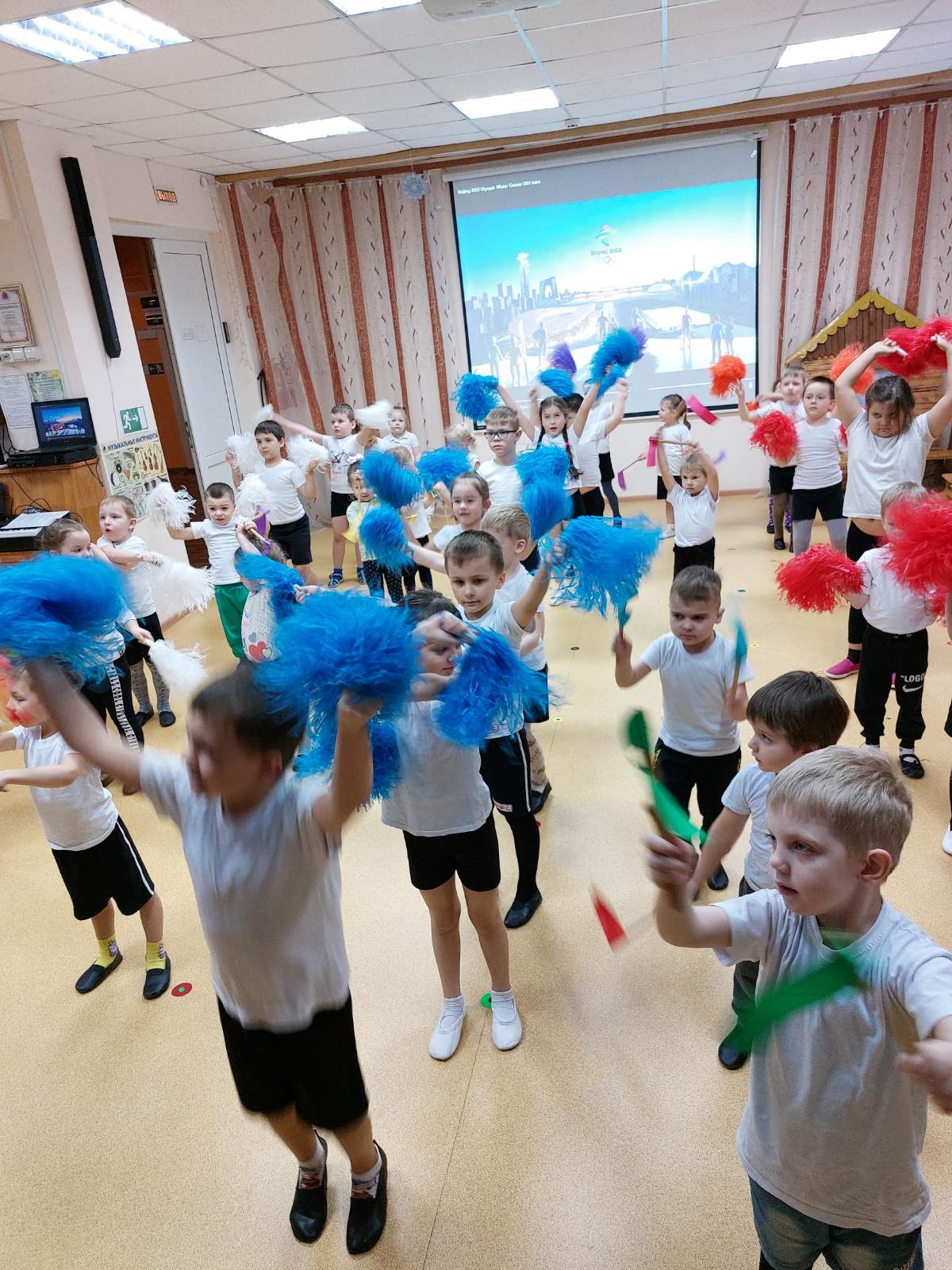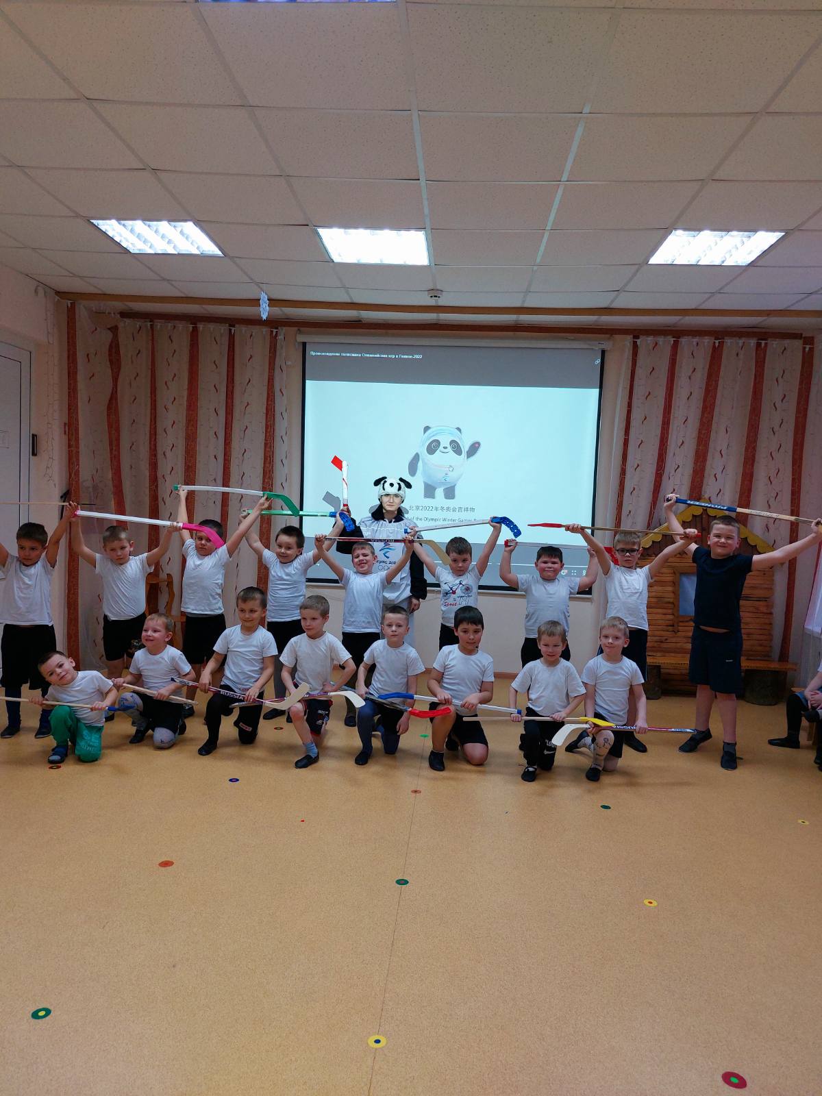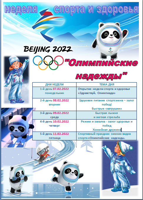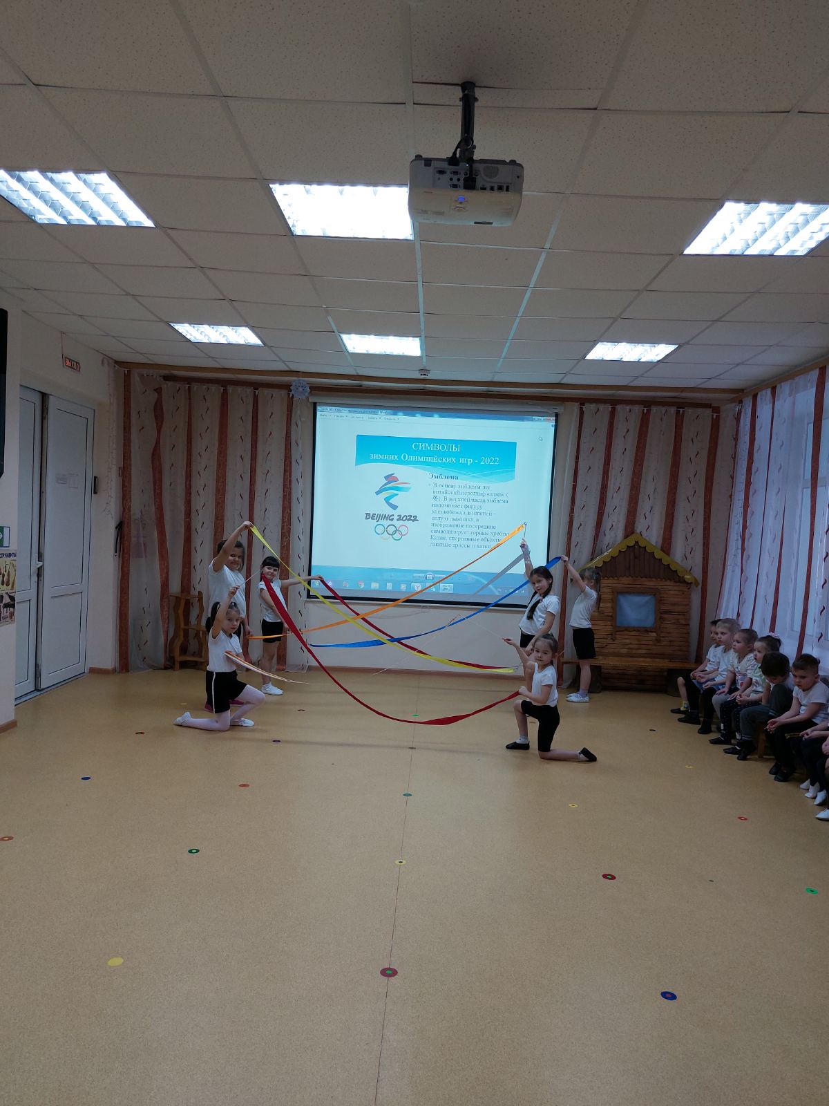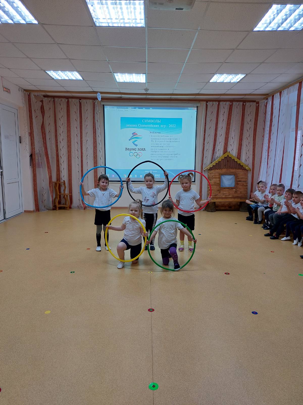 Пять колец Зимней ОлимпиадыСегодня в нашем детском саду прошло торжественное мероприятие посвященное открытию Олимпийских игр в Пекине. Девочки исполнили танец с длинными лентами «Китайский иероглиф - Зима». Спортивно – танцевальная композиция «Пять колец» познакомила всех с названием континентов, которые они обозначают. Парад хоккеистов, продемонстрировал к готовности к завтрашней игре, которая пройдет на стадионе села Ворша.