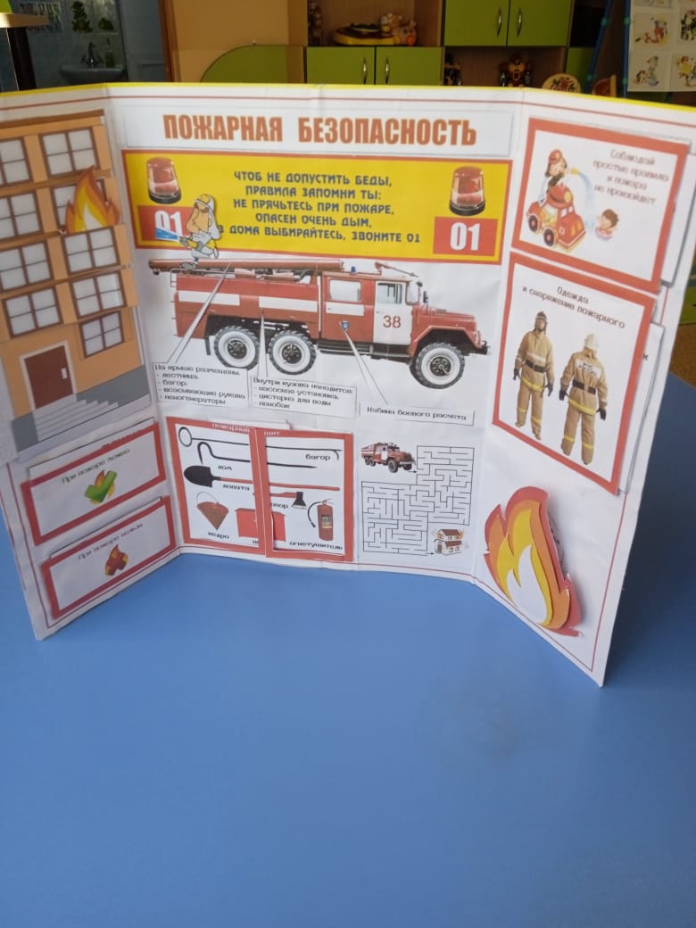 Воспитатель Унжина З.В. изготовила для родителей 1 мл группы лэпбук «Пожарная безопасность», макет «Осторожно тонкий лед», макет « Почему возникает пожар».