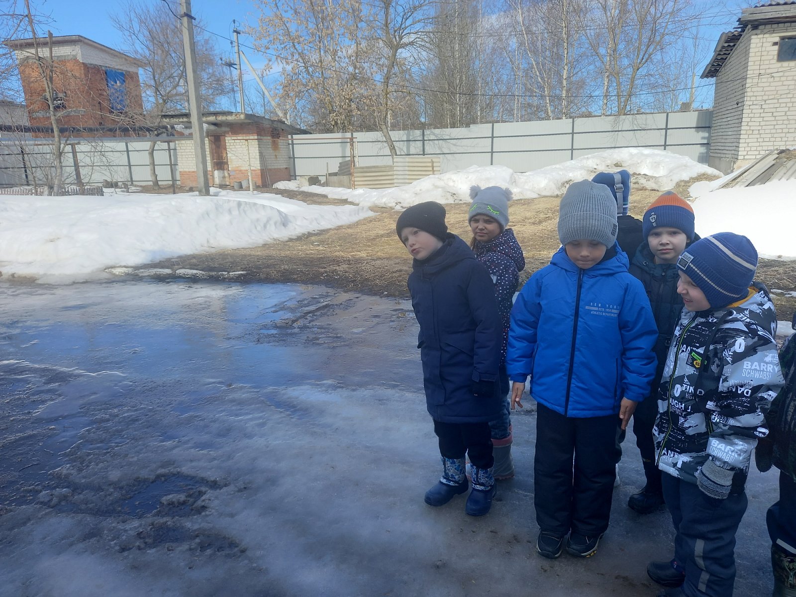 Воспитатель Пинчук О.А. провела на прогулке беседу о поведении на тонком льду, провели экспериментальную деятельность: состояние льда на лужах,подготовила презентацию о правилах поведения на дорогах весной.