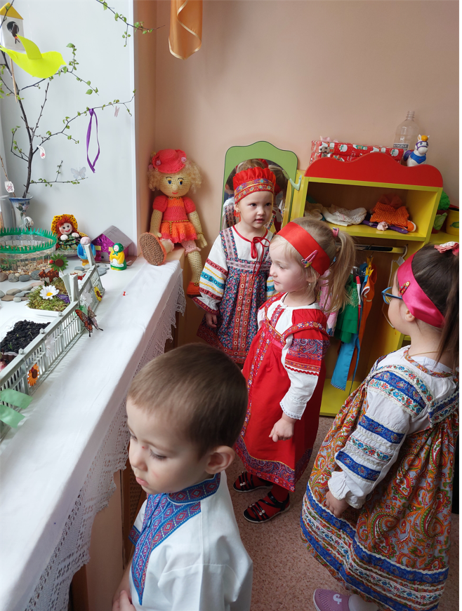 Малыши, одетые в национальных костюмах, прочитали стихотворения об овощах, выращенных на мини огороде.