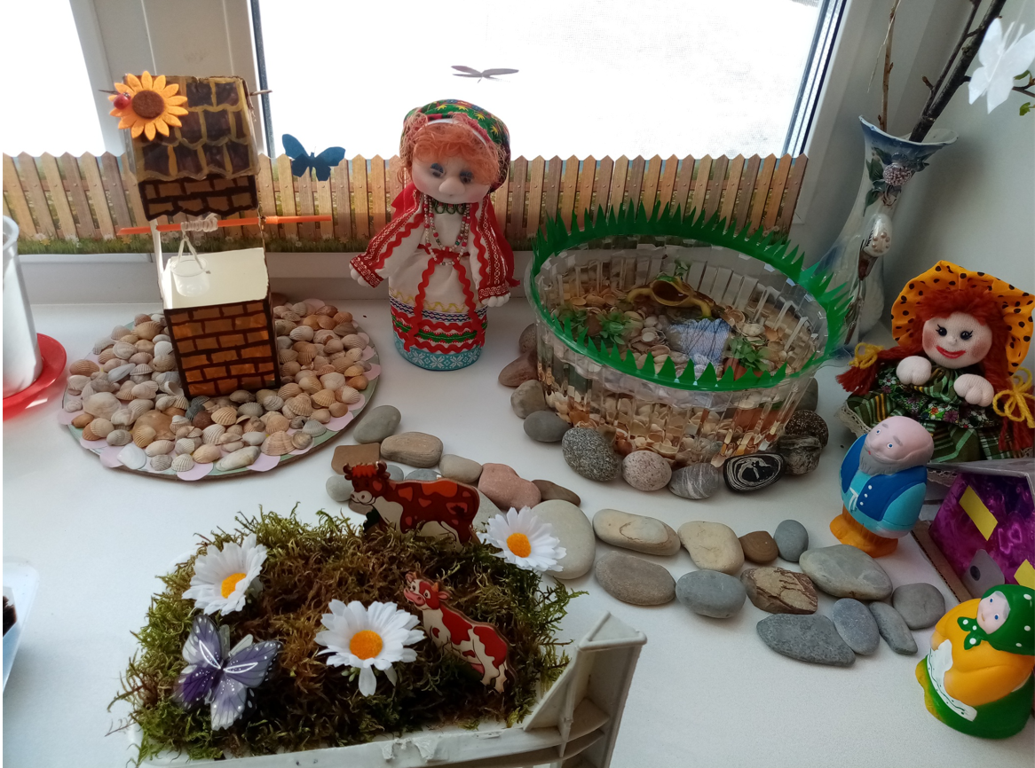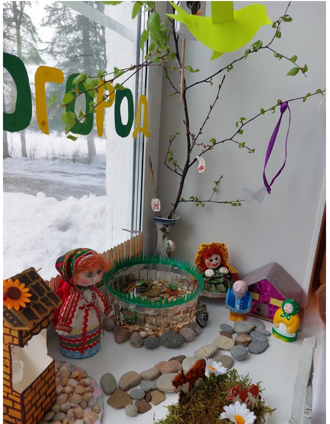 В рамках поведения мероприятий, посвященных Году культурного наследия народов России, в нашем детском саду прошел ежегодный конкурс « Огород на окне». Воспитатель1-й младшей группы Унжина З.В. обустроила огород в мордовском стиле. Куколка в костюме мокшанки- «хранительница» огорода, аквариум с живой рыбкой, дорожка из камешков к колодцу, веселые посадки овощей и цветов, дидактическая игра из фетра «Собери урожай», развивающий альбом «Семена» - все это было представлено членам жюри.