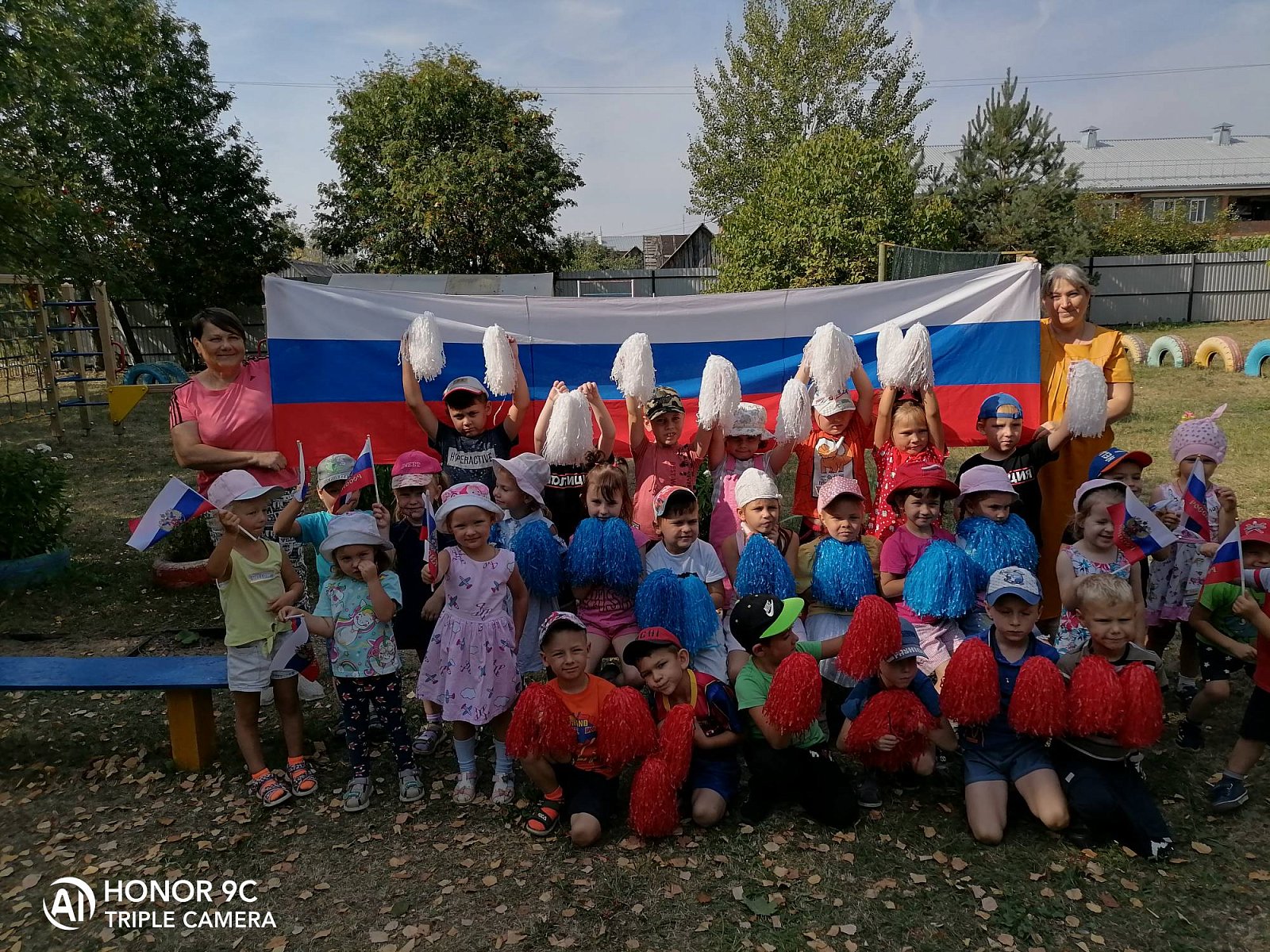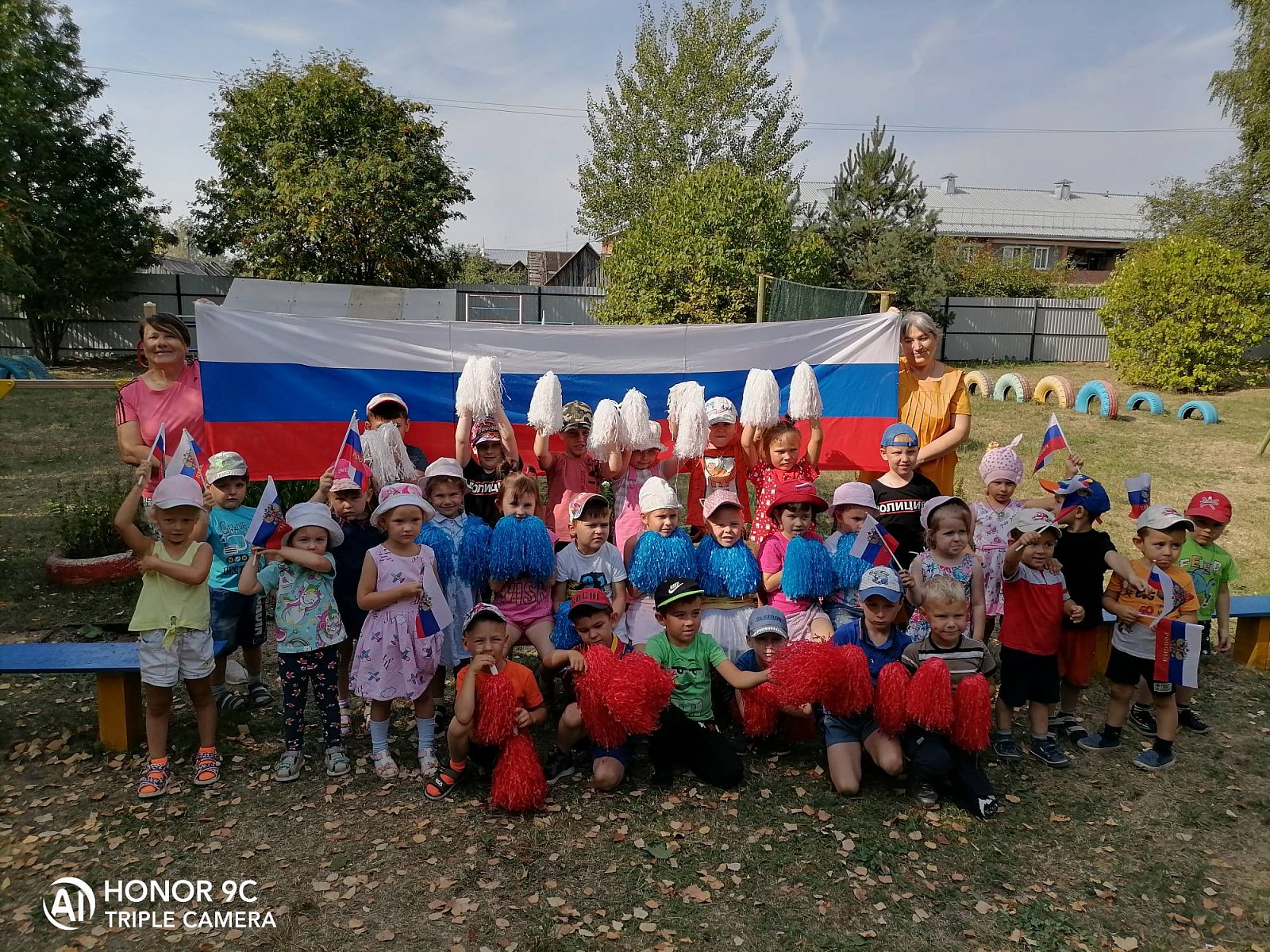 На спортивном празднике «Российского триколора» воспитанники закрепили знания цветов Российского флага с помощью эстафет и подвижных игр.
