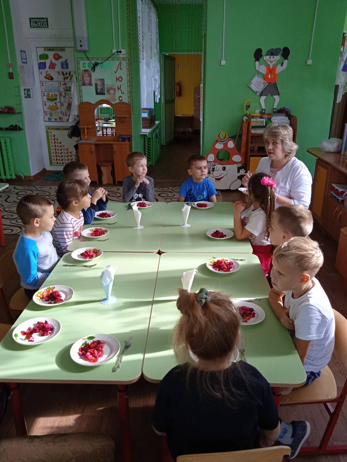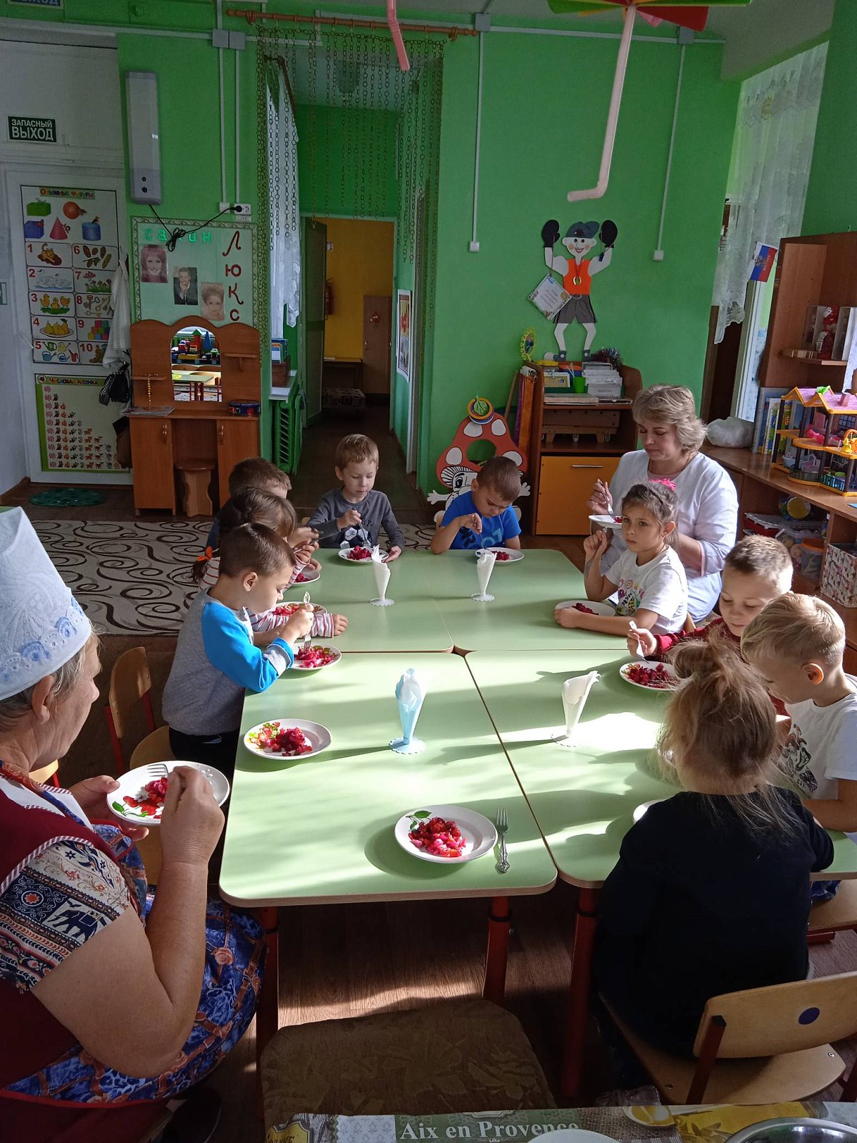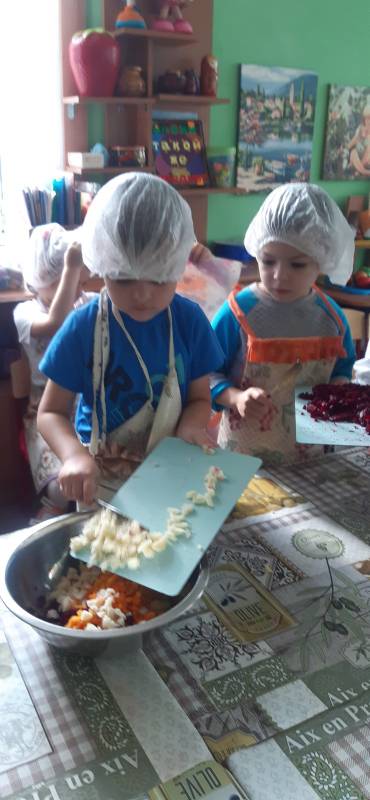 Сварим свёклу мы, картошку,В рамках тематической недели «Овощи и фрукты» воспитанники логопедической группы совместно с воспитателем Миловановой Т.Н. занимались опытно-экспериментальной деятельностью. Юные повара приготовили винегрет и пригласили сотрудников детского сада на дегустацию своего блюда.