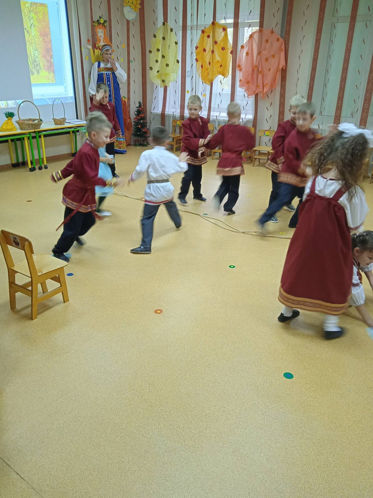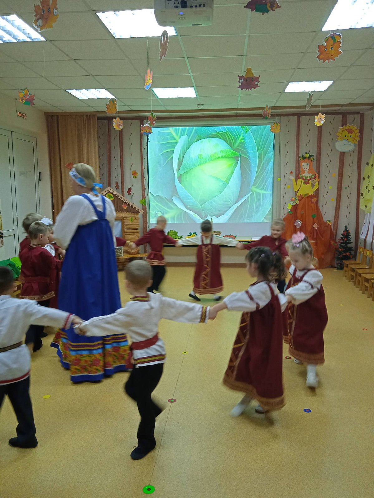 Воспитанники совместно с воспитателями Простяковой И.Н.и Миловановой Т.Н. «завили» капустку, водили хороводы, проиграли в игру «Я на колышке сижу».