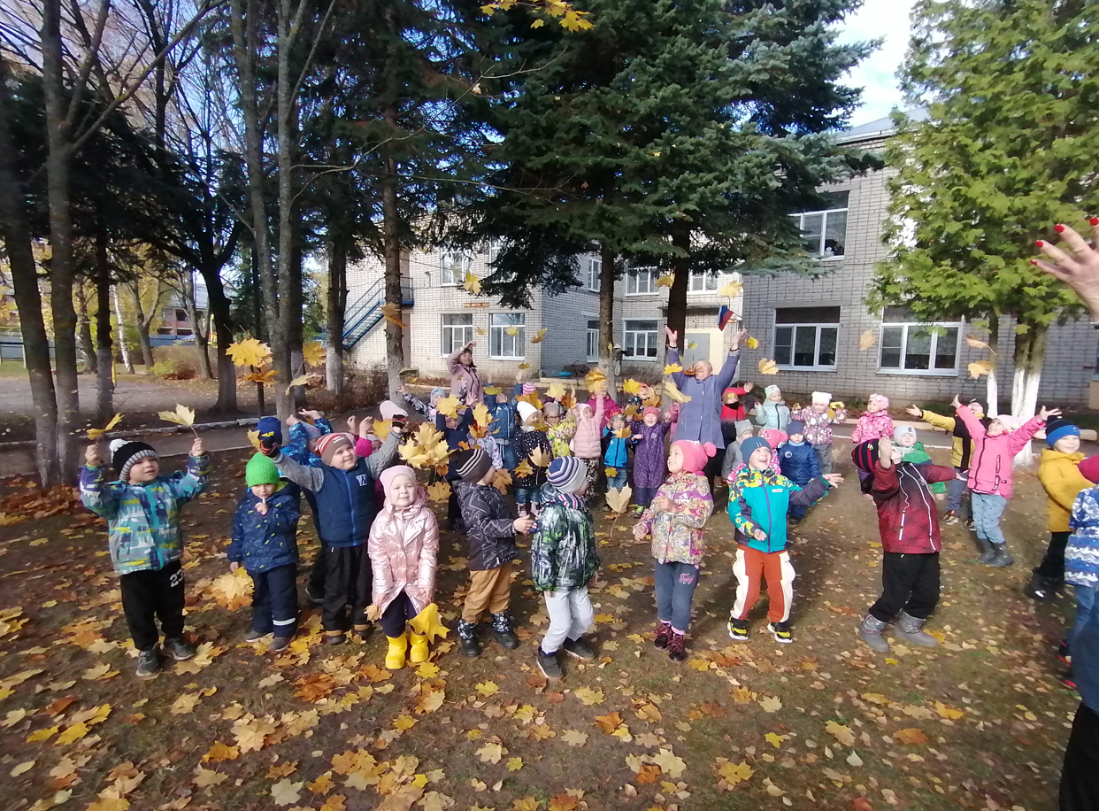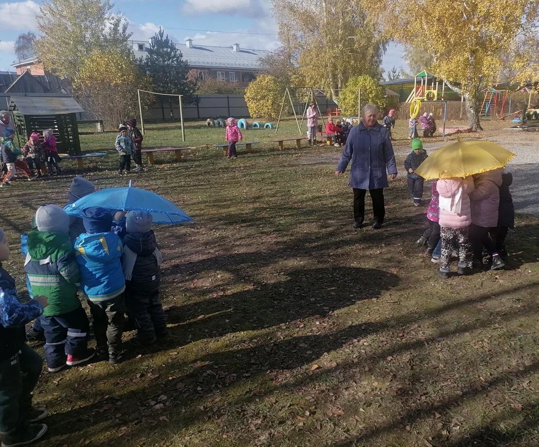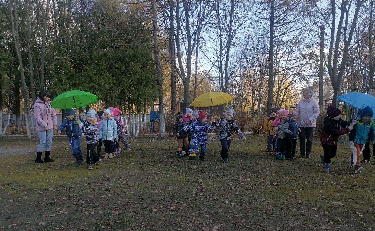 Разноцветные зонтики «закружились» в осеннем хороводе, завершился спортивный праздник весёлым листопадом.