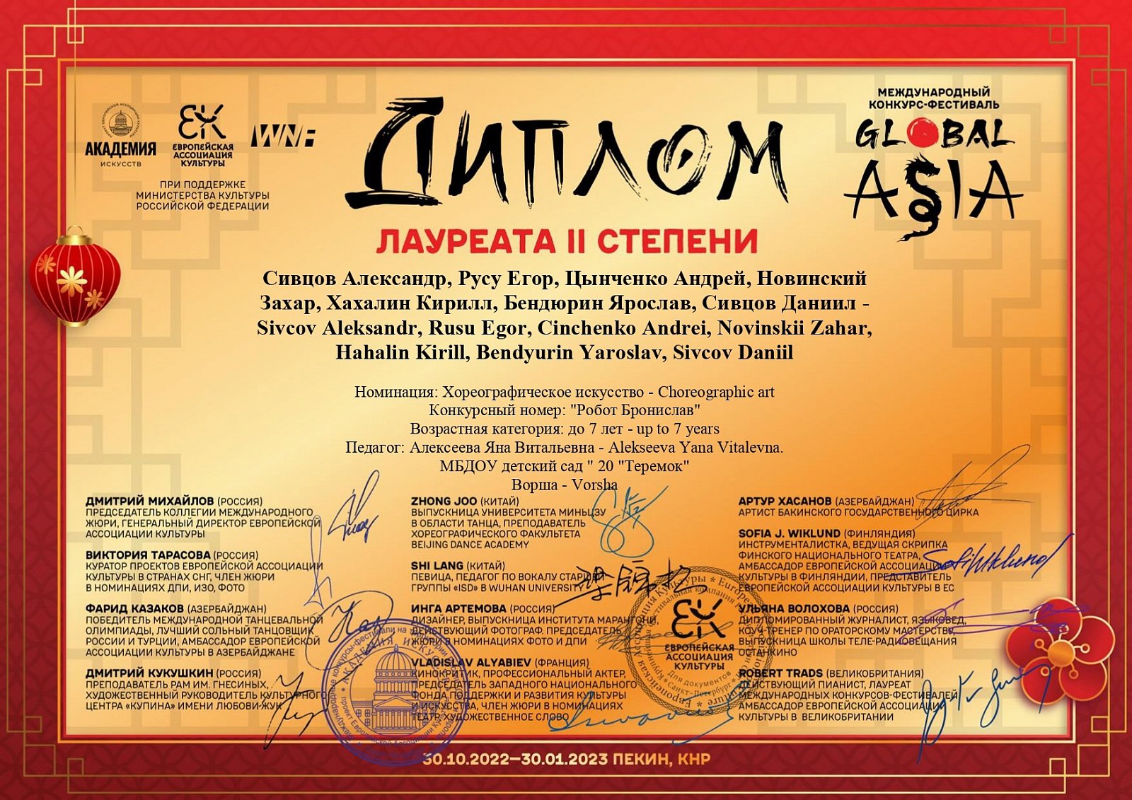 Воспитанники нашего ДОУ приняли участие в Международном зарубежном конкурсе-фестивале "Global Asia" 2022 (Китай) - ссылка ВК (https://vk.com/wall-170603545_16528)