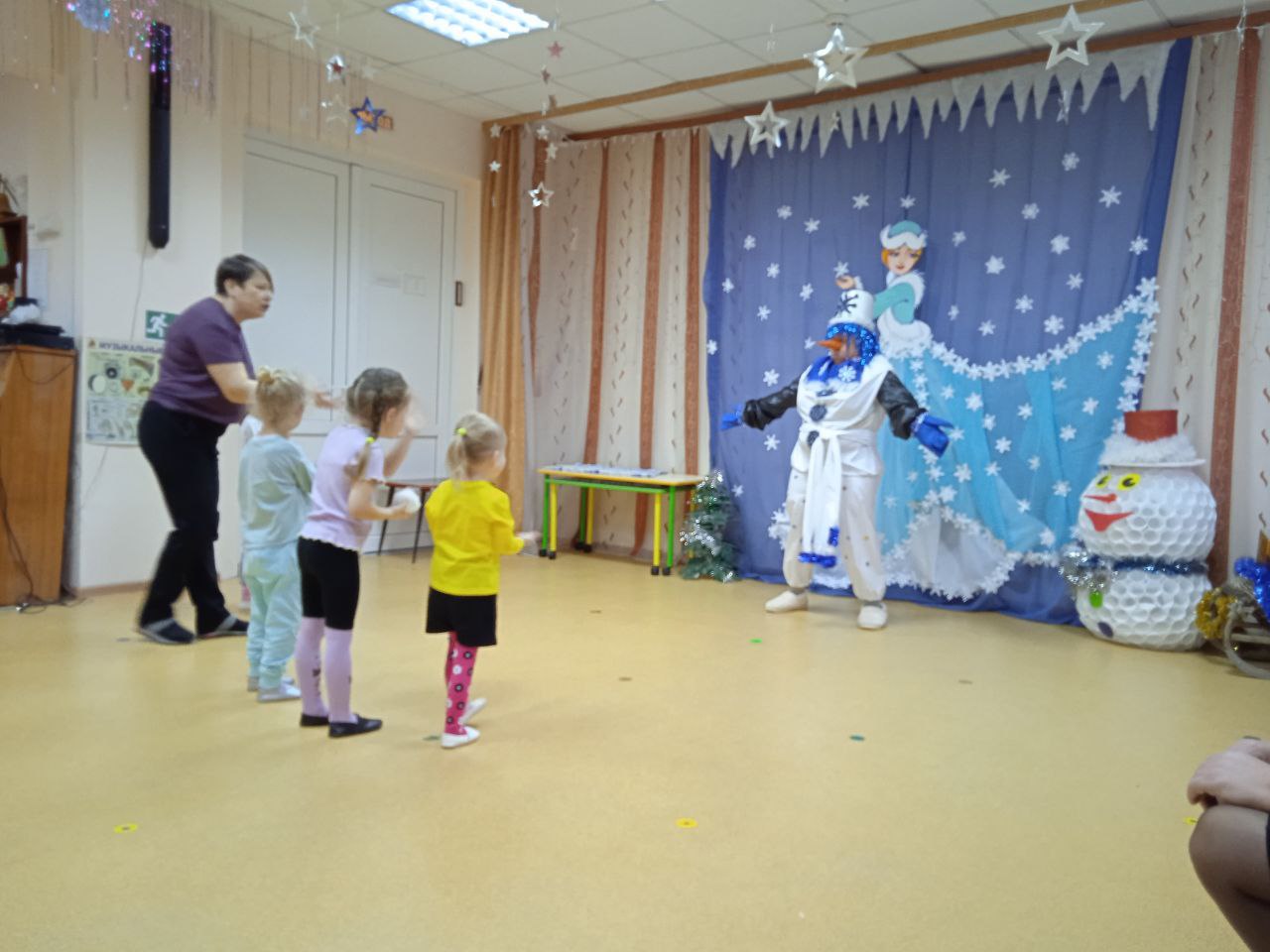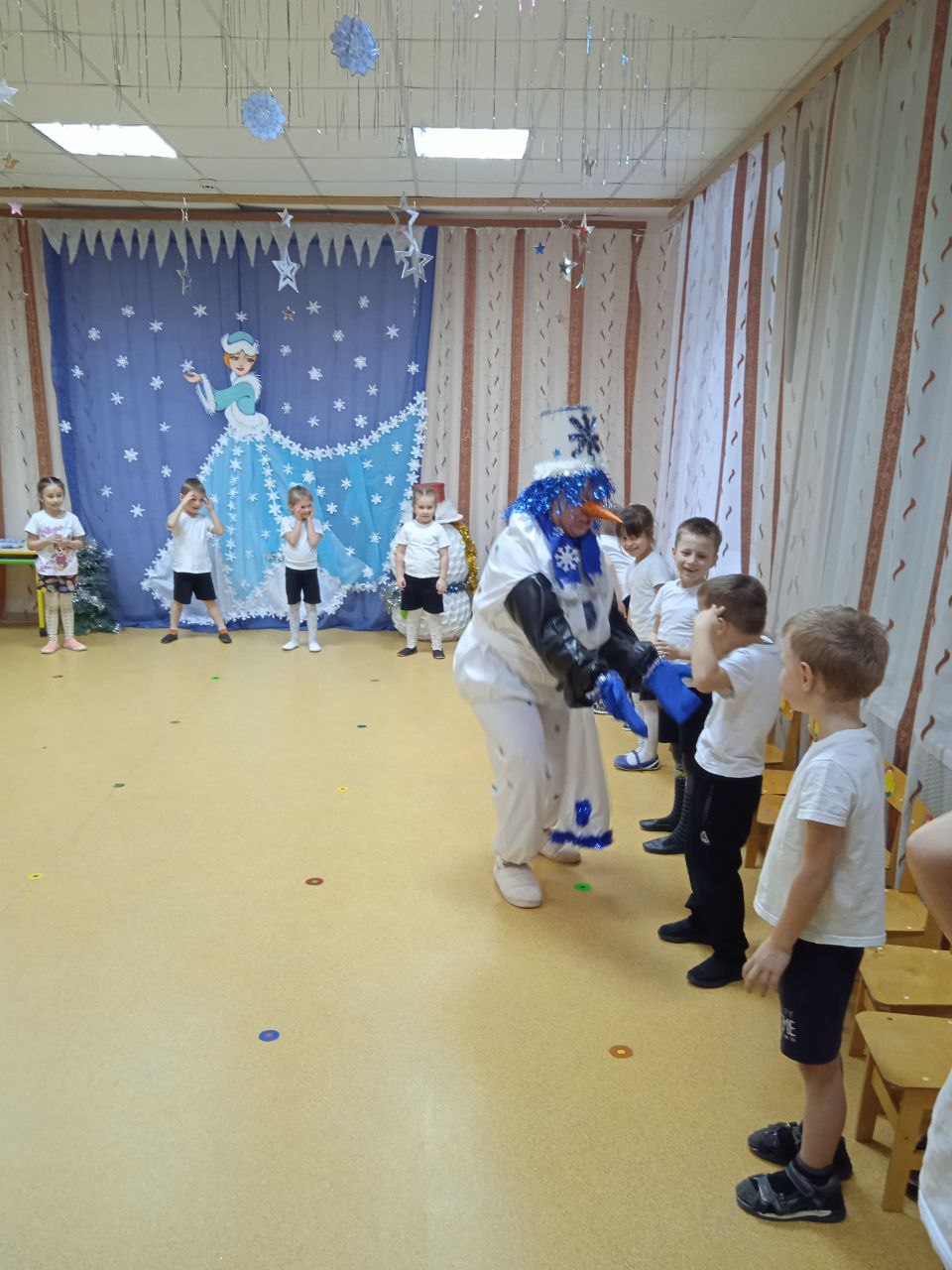 Сегодня в нашем саду прошло развлечение «День рождения Снеговика». Воспитанники детского сада под руководством руководителя по физ.воспитанию Карповой Е. А. поучаствовали в эстафетах, потанцевали со снеговиком, поиграли в интересные игры. В заключение развлечения ребята подарили снеговику поздравительные открытки, а снеговик угостил гостей «вкусняшками».