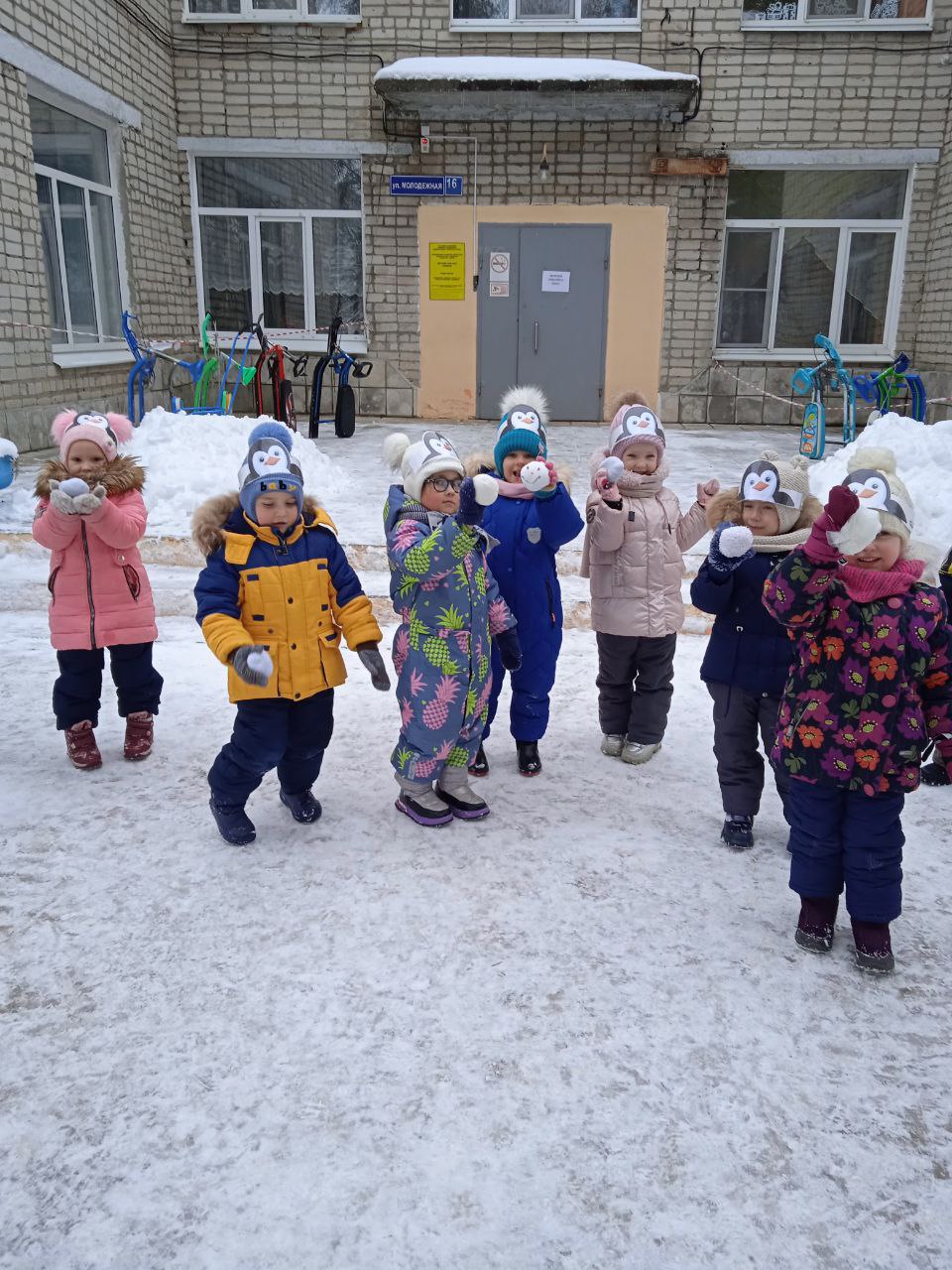 Все пингвины в АнтарктидеСегодня воспитанники средней группы участвовали в тематическом спортивном празднике «Веселые пингвины». Поиграли в игру «Белый медведь и пингвины», поиграли в снежки, «поплавали» на льдинах, исполнили веселый танец «Пик, пак, пок».