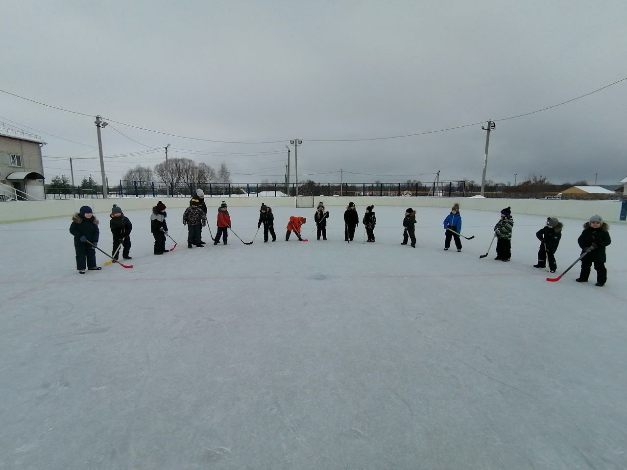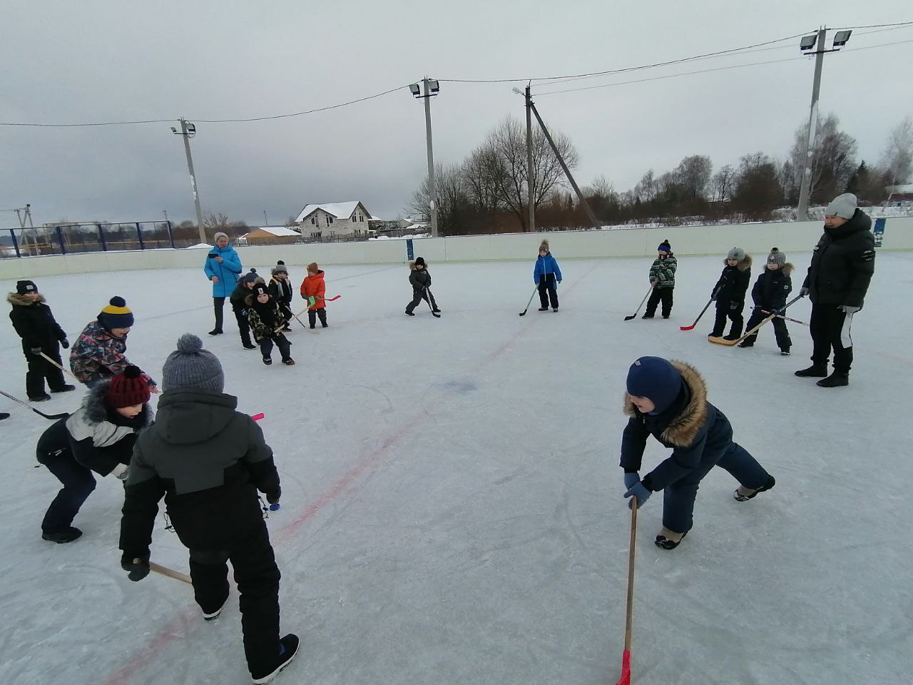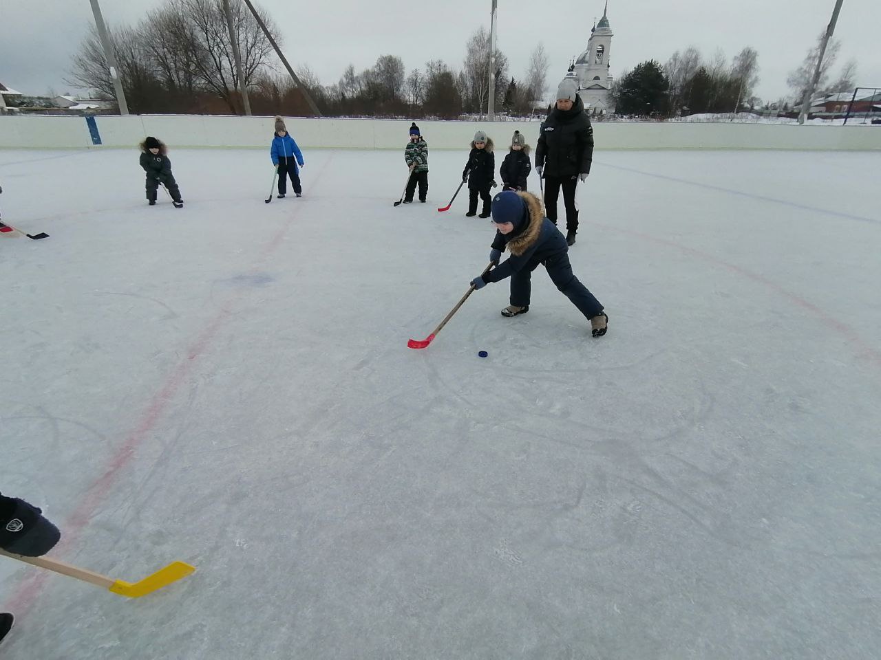 В хоккейной коробке Андрей Александрович провел мастер класс по владению хоккейной клюшкой и шайбой.