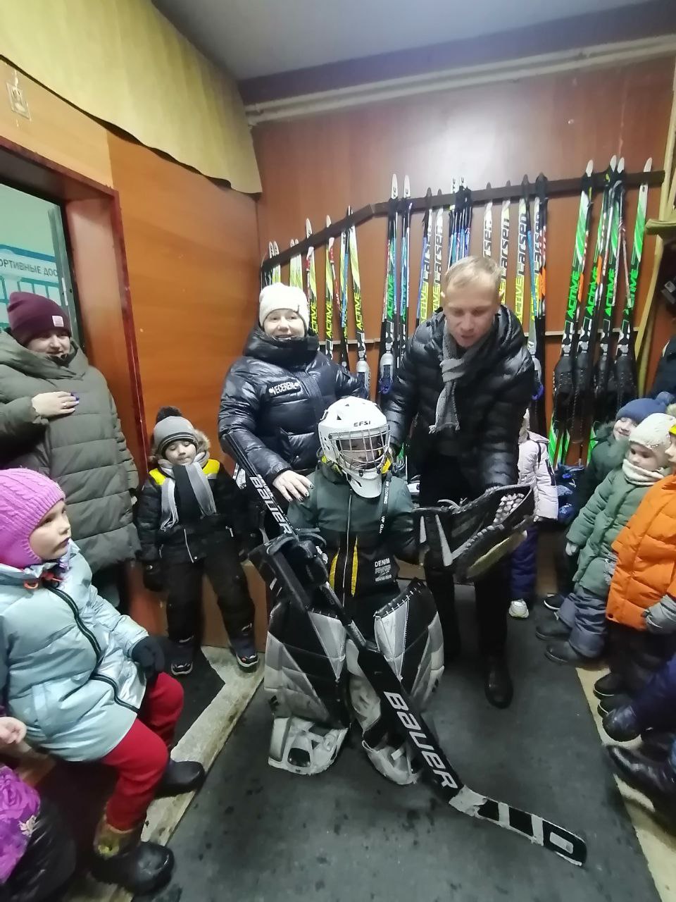 Мы зиму ждали не напрасно:Воспитанники нашего ДОО в рамках недели здоровья и спорта посетили МБУФКС "Воршинский СК". Директор Вахромов А.А. рассказал детям о зимних видах спорта, познакомил с экипировкой хоккеиста, ребята примерили форму вратаря и почувствовали, как тяжело в ней просто стоять, а на льду играть тем более затруднительно без тренировки.