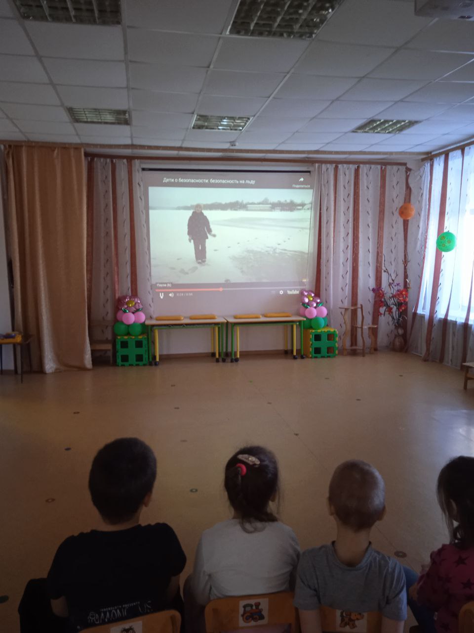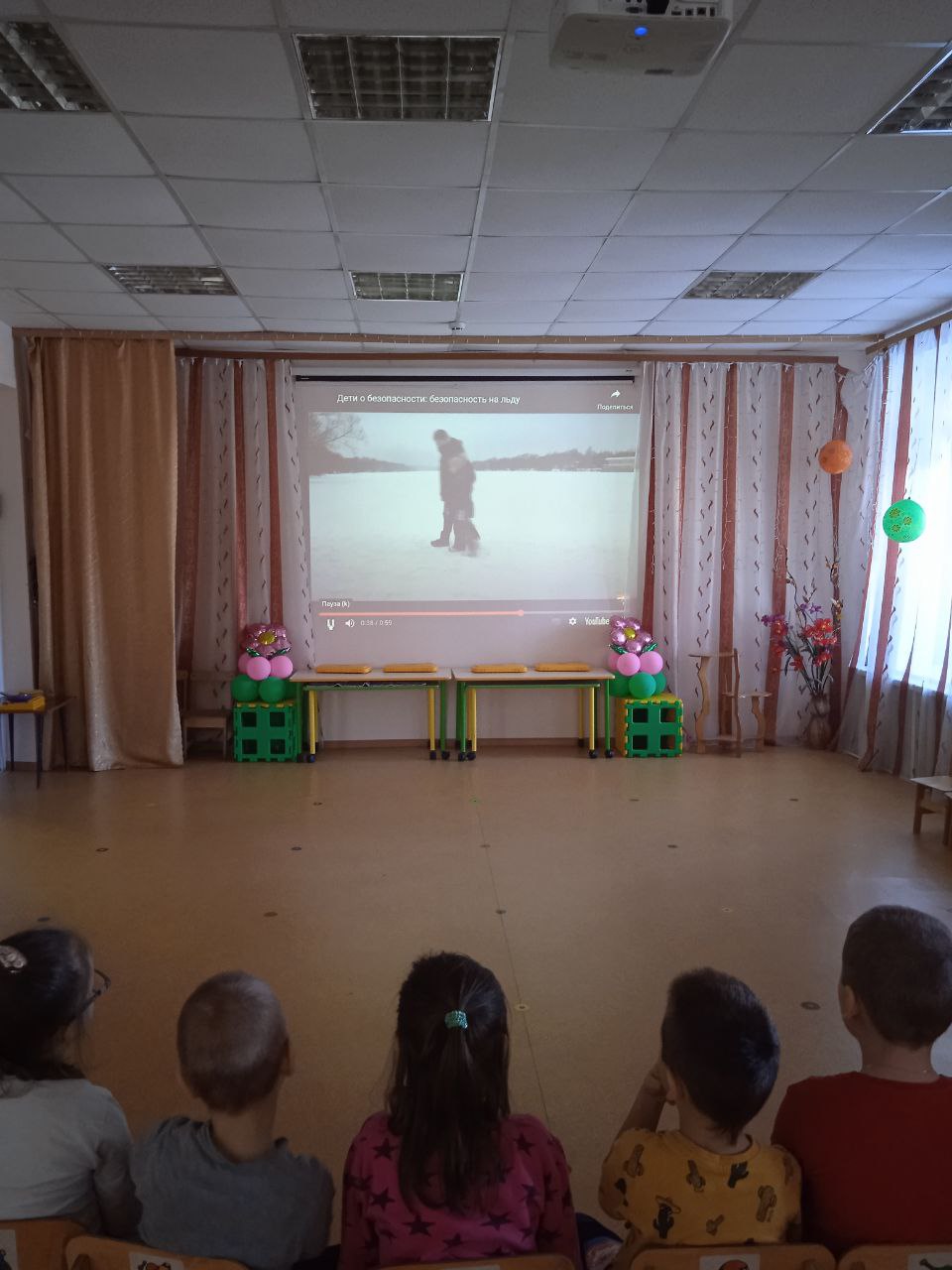 Воспитанникам старшей группы был показан ролик «Безопасность на льду», дети средней группы просмотрели серию мультфильмов об «Опасности тонкого льда».