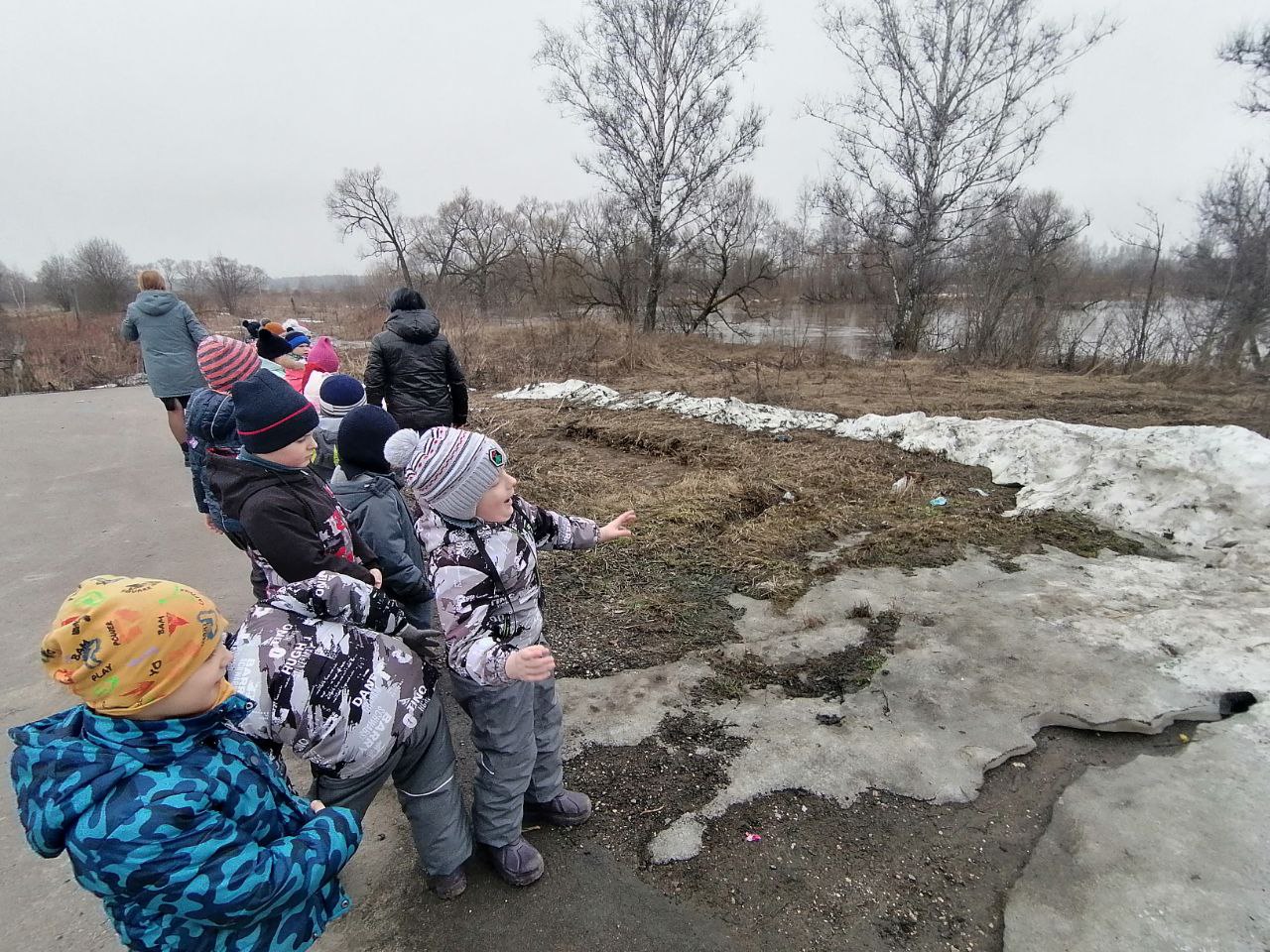 По весне, заливая луга,Сегодня воспитанники нашего ДОУ совместно со старшим воспитателем и воспитателями своих групп совершили экскурсию к пожарному пруду и реке Ворша. Для расширения знаний детей о весенних паводках, о правилах поведения на весеннем льду была проведена беседа о том, что весенний паводок опасен для жителей, которые живут вблизи рек, водоемов. Лед тает, уровень воды поднимается и затапливает дома. Страдают люди, домашние животные, разрушаются постройки.