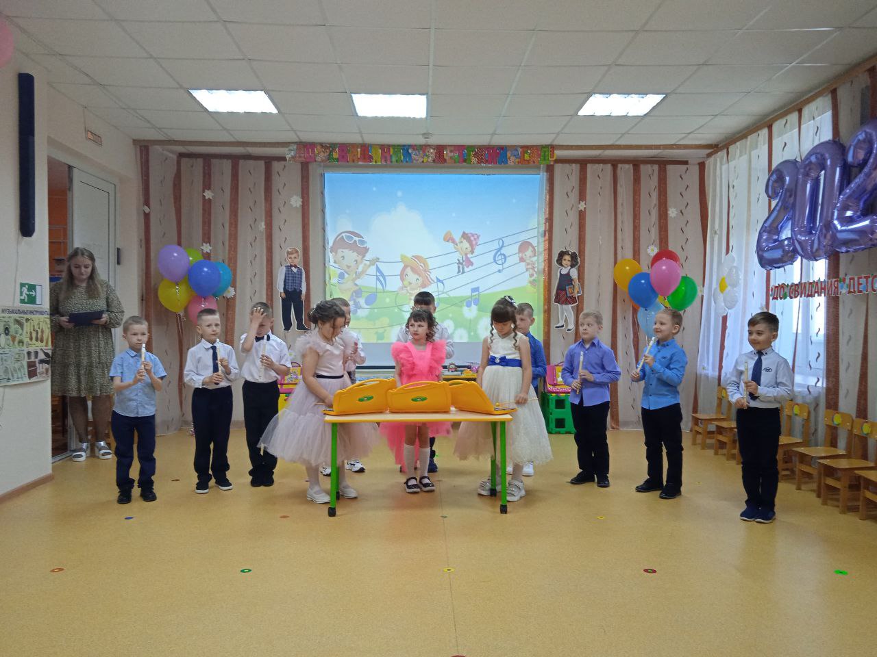 Малыши прочитали своим старшим товарищам стихи и станцевали с ними прощальный танец, ансамбль «Свирелюшка» приготовил музыкальный сюрприз.