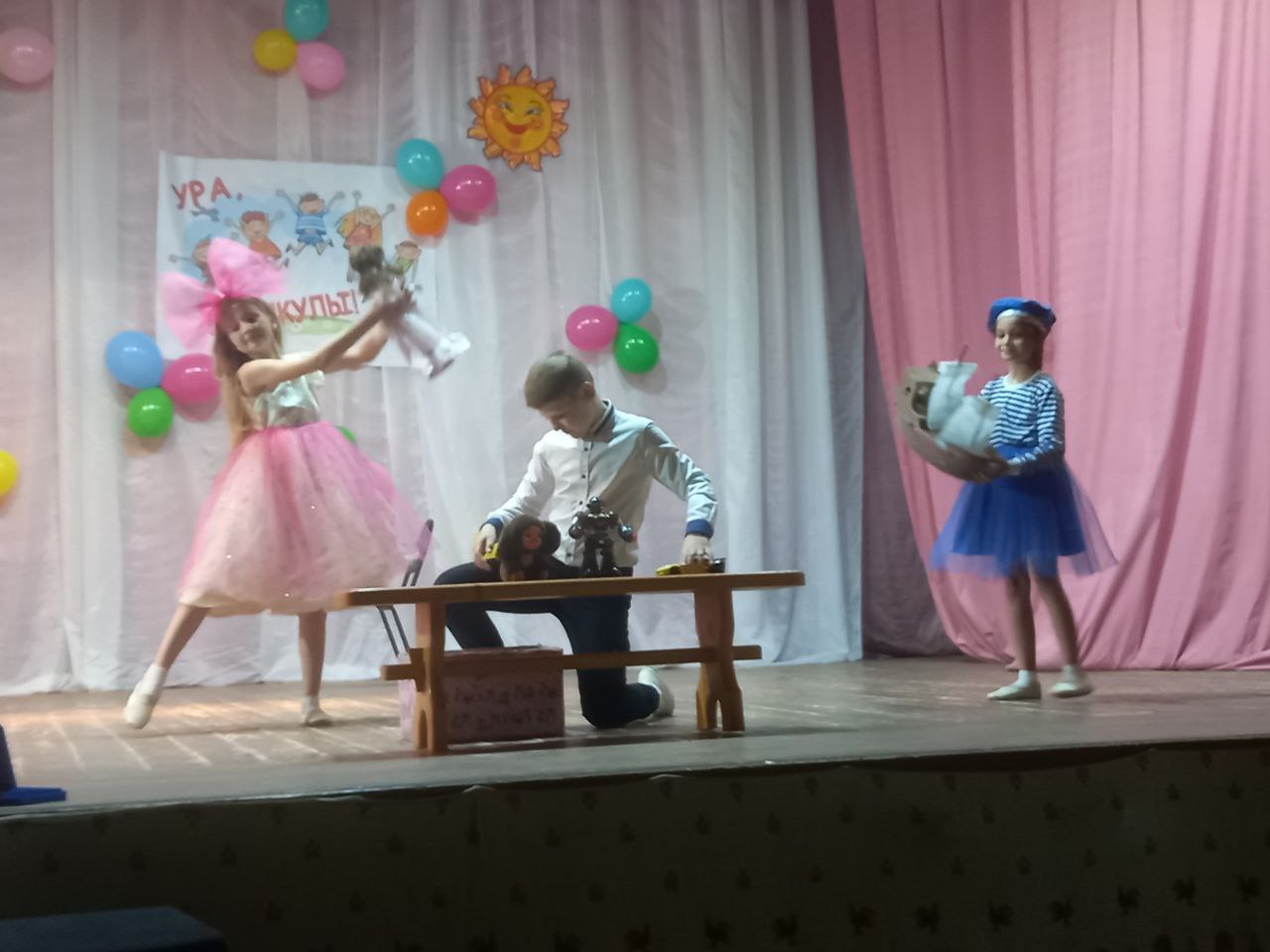 Сегодня наши воспитанники посетили Воршинский СДК, где юные артисты из Бабаевского СДК представили спектакль для детей и взрослых по мотивам сказки Александра и Ларисы Измайловых « Тин и его игрушки». Мальчик по имени Тин был очень аккуратный и внимательный. Он с добротой относился к своим игрушкам, которые каждую ночь радовались, что живут у такого замечательного хозяина. Но все изменилось, когда появилась сломанная, злая кукла Фея Дистрофея и превратила Тина в злого ребенка. Как игрушки боролись за своего хозяина и помогли ему стать прежним наши воспитанники узнали, побывав на спектакле.