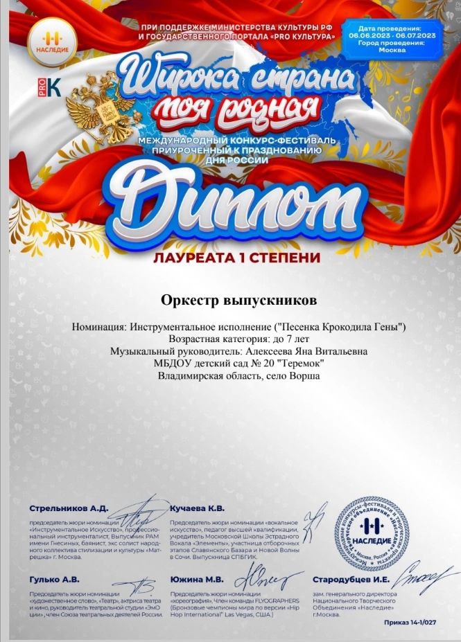 Наши воспитанники получили Диплом I степени в номинации «Инструментальное исполнение», представив произведение «Песенка Крокодила Гены»