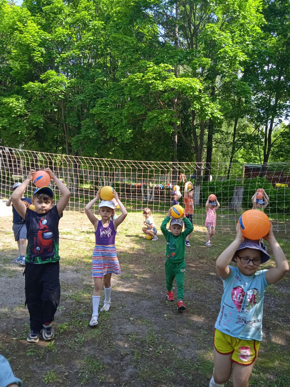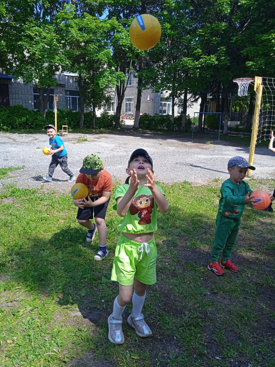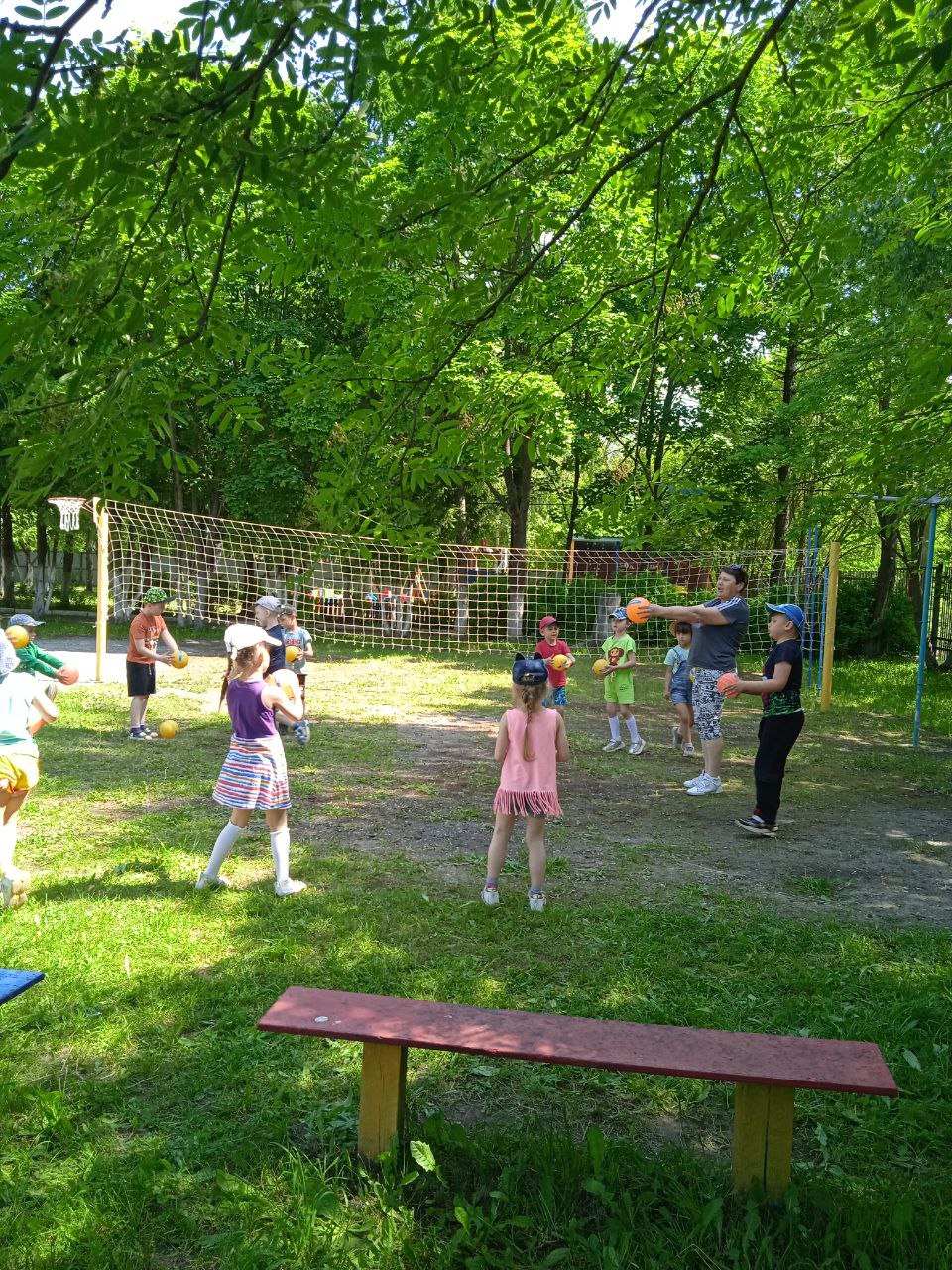 Осваивали двигательные навыки: подбрасывание мяча, вверх и ловля его двумя руками, не прижимая к груди. Закрепляли навыки игры в волейбол.