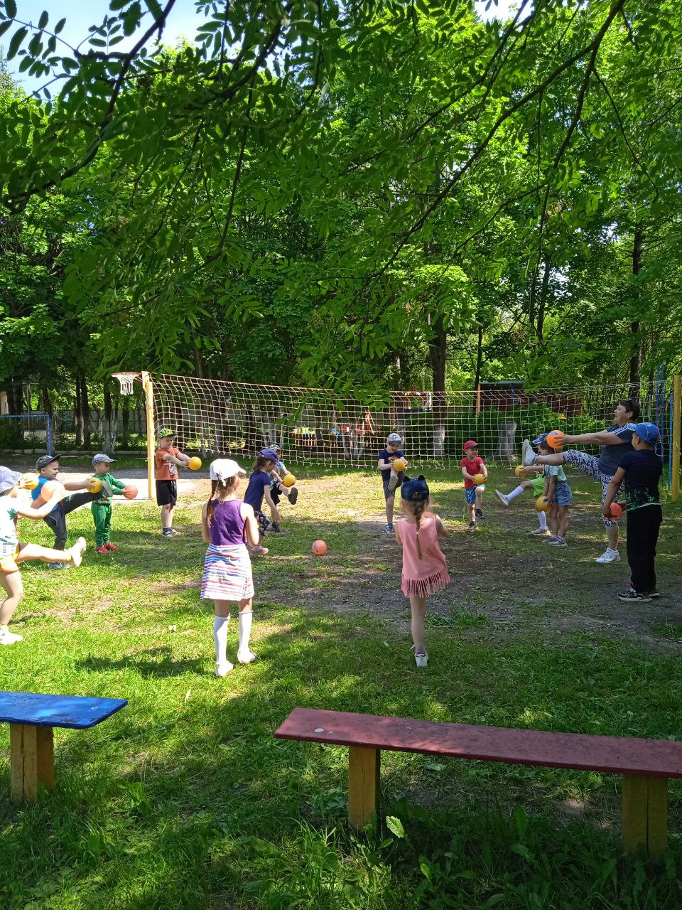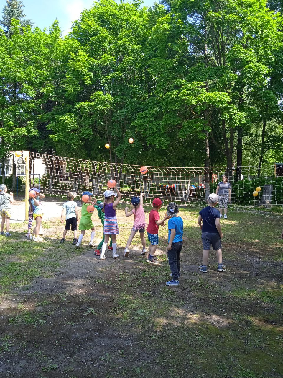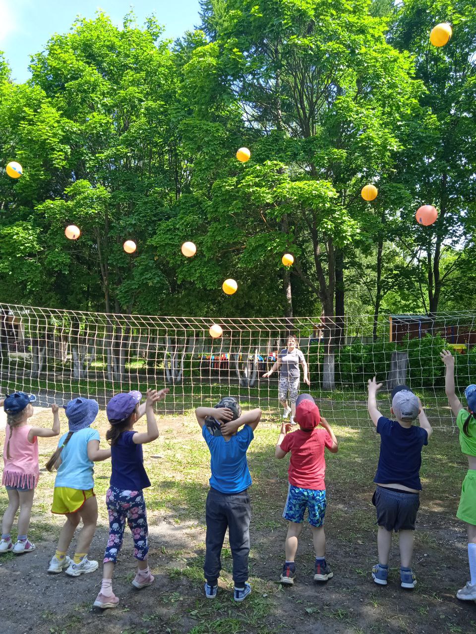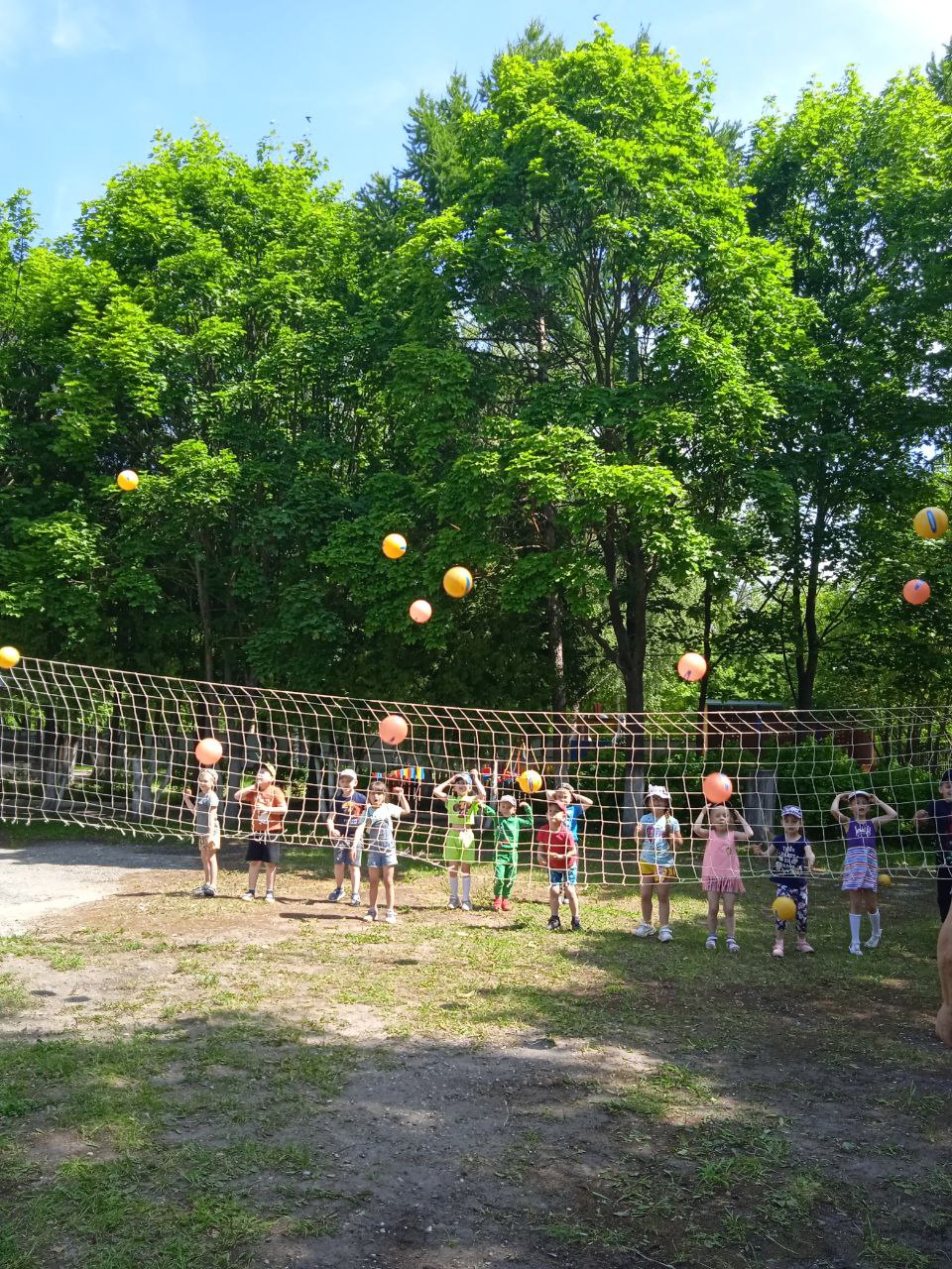 Осваивали двигательные навыки: подбрасывание мяча, вверх и ловля его двумя руками, не прижимая к груди. Закрепляли навыки игры в волейбол.