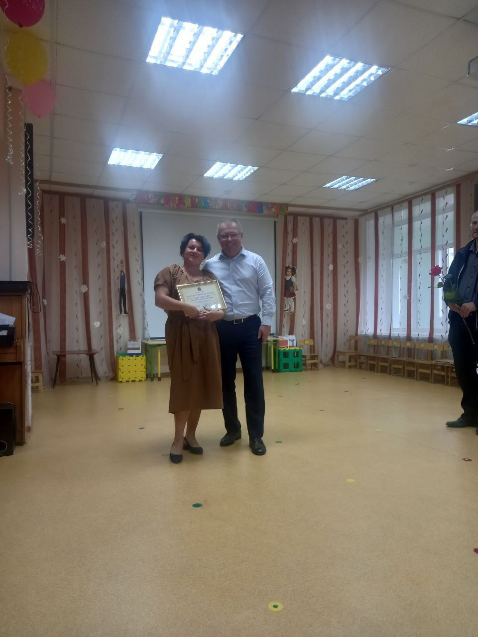 Вот грамота в руках твоих красуется,В рамках "Года педагога и наставника" в детском саду побывал заместитель председателя законодательного собрания Д.А.Рожков. Он рассказал о развитии области и Собинского района, остановился на ближайших задачах, ответил на вопросы собравшихся.