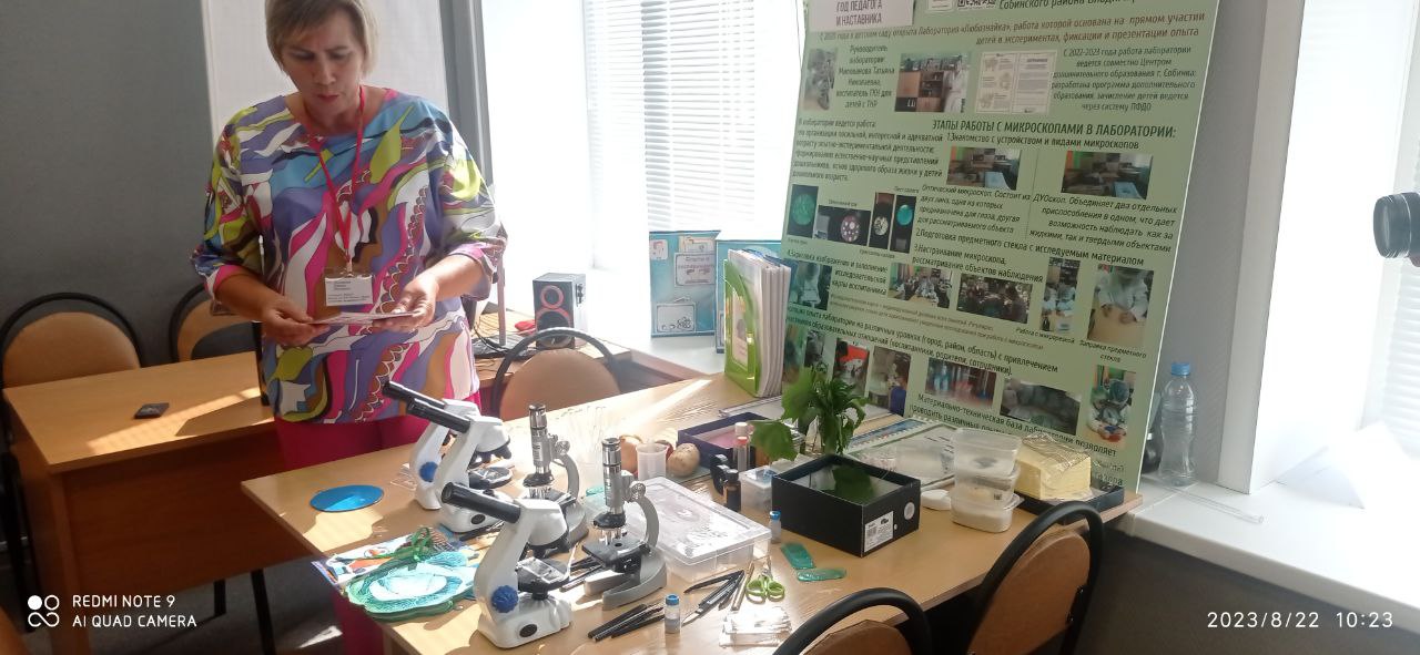 Где были представлены эффективных воспитательных практик образовательных организаций региона. Наш ДОО представляла воспитатель Милованова Татьяна Николаевна со стендовым докладом «Развитие познавательного интереса у детей дошкольного возраста в процессе опытно – экспериментальной и исследовательской деятельности с использованием микроскопов при реализации программы кружкой деятельности «Волшебный микроскоп", наглядно – демонстрационный показывающий работу педагога с детьми с ТНР с микроскопами по опытно – экспериментальной деятельности.