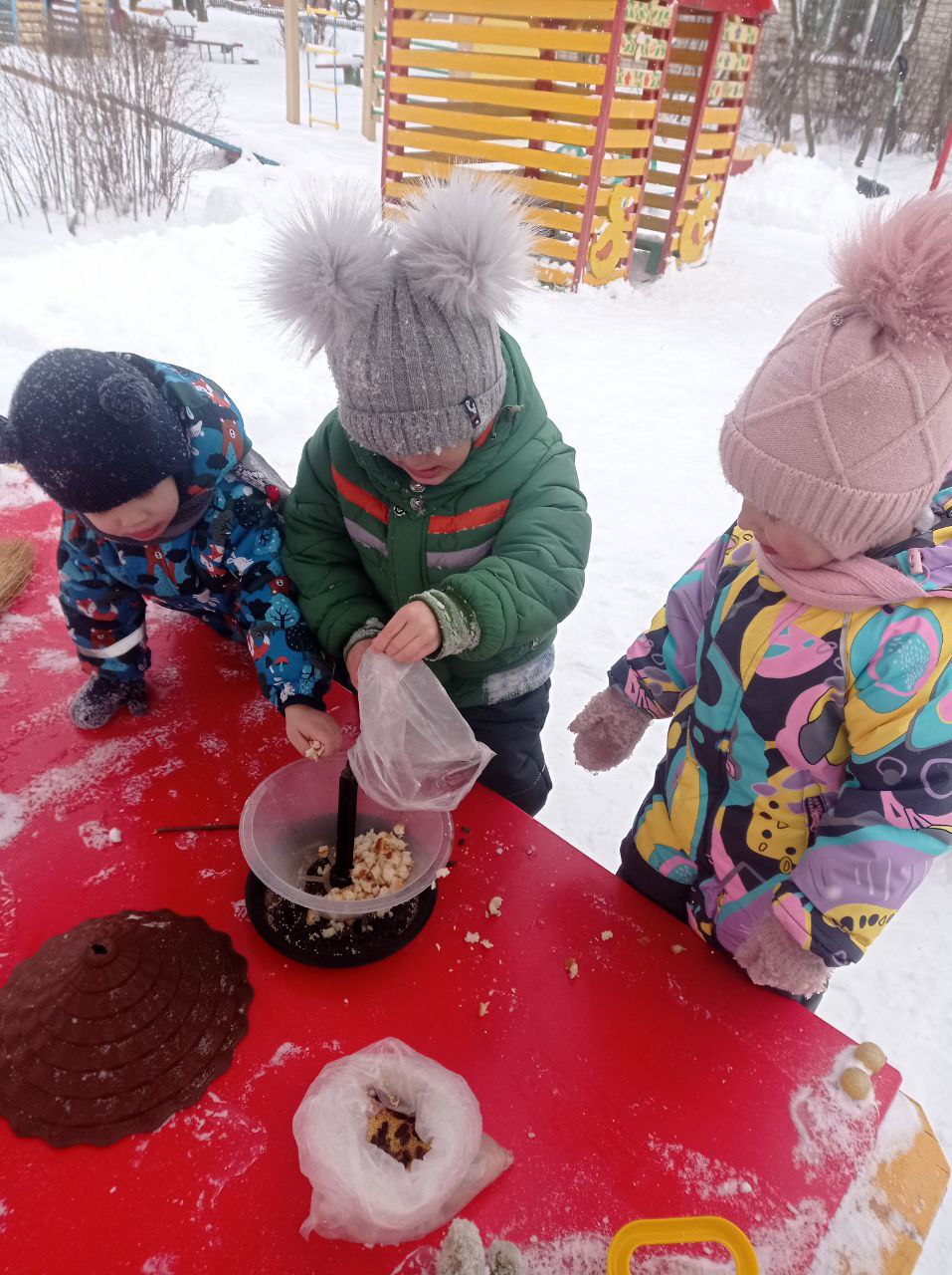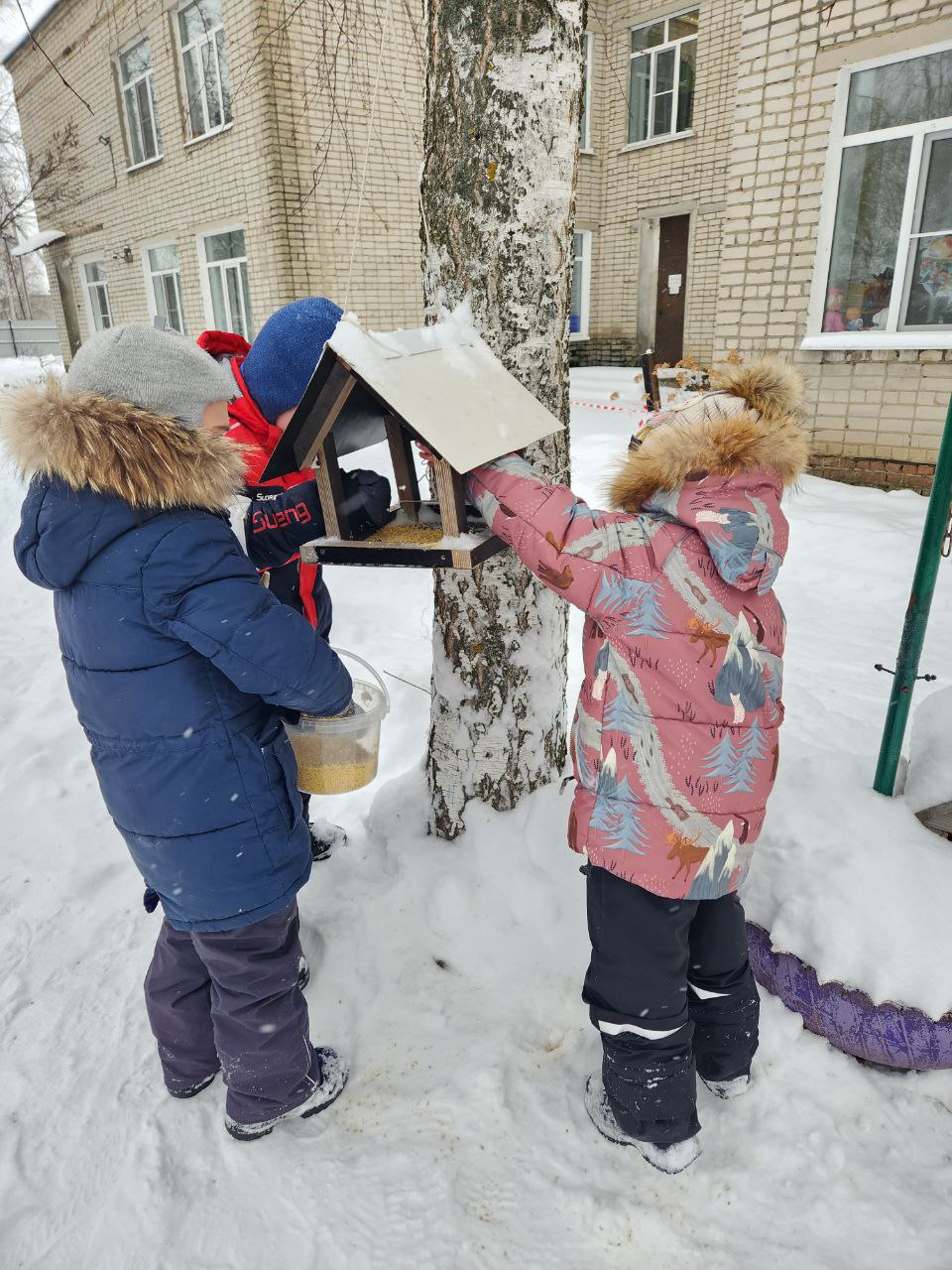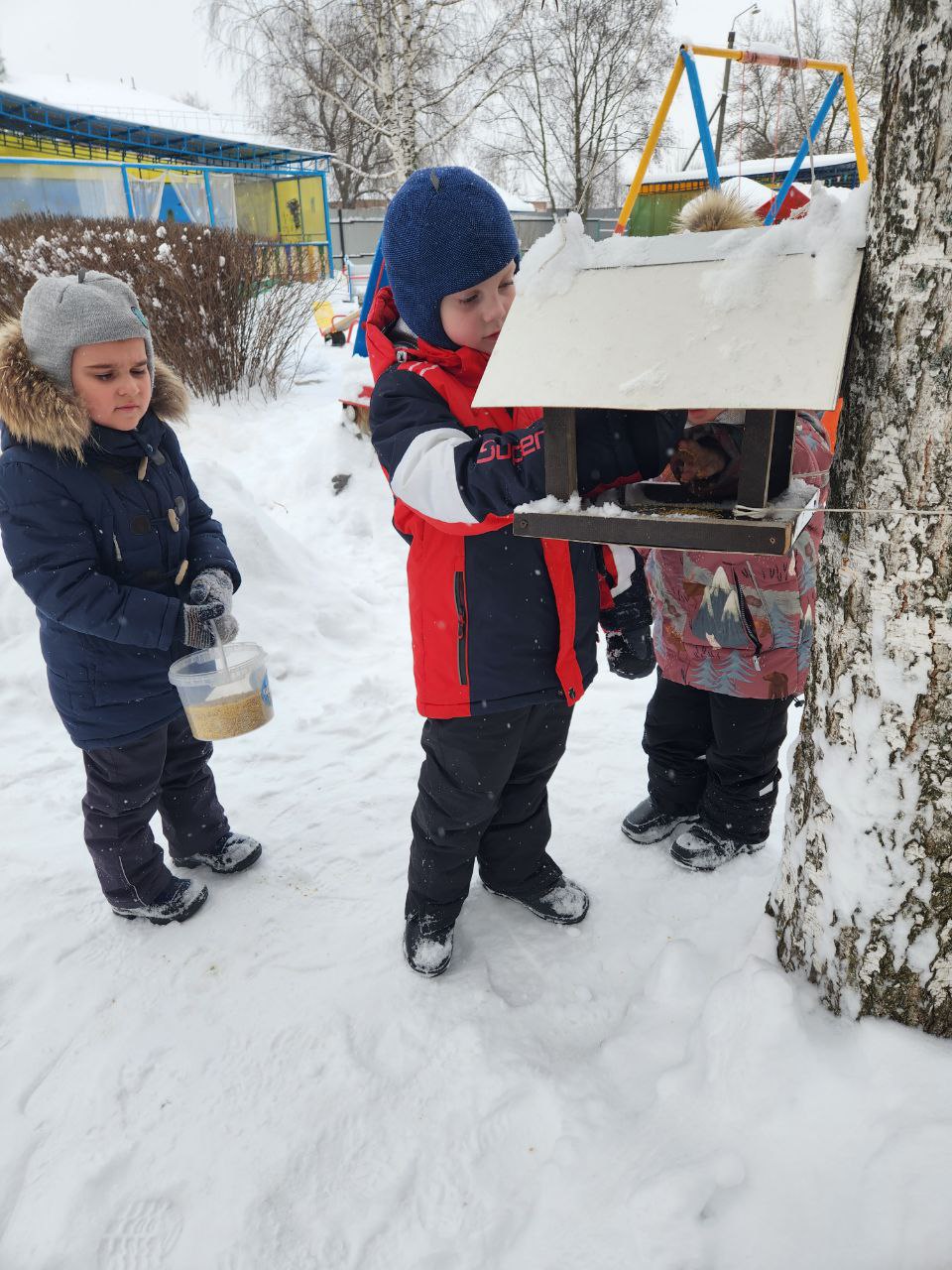 Поучаствовали в акции «Поможем малышам» (дети помогают младшим собраться на прогулку); «Птицы – наши пернатые друзья» (кормление птиц на территории детского сада); Было предложено воспитанникам помощь в быту родителям и рассказать ребятам в группе о своих добрых делах..