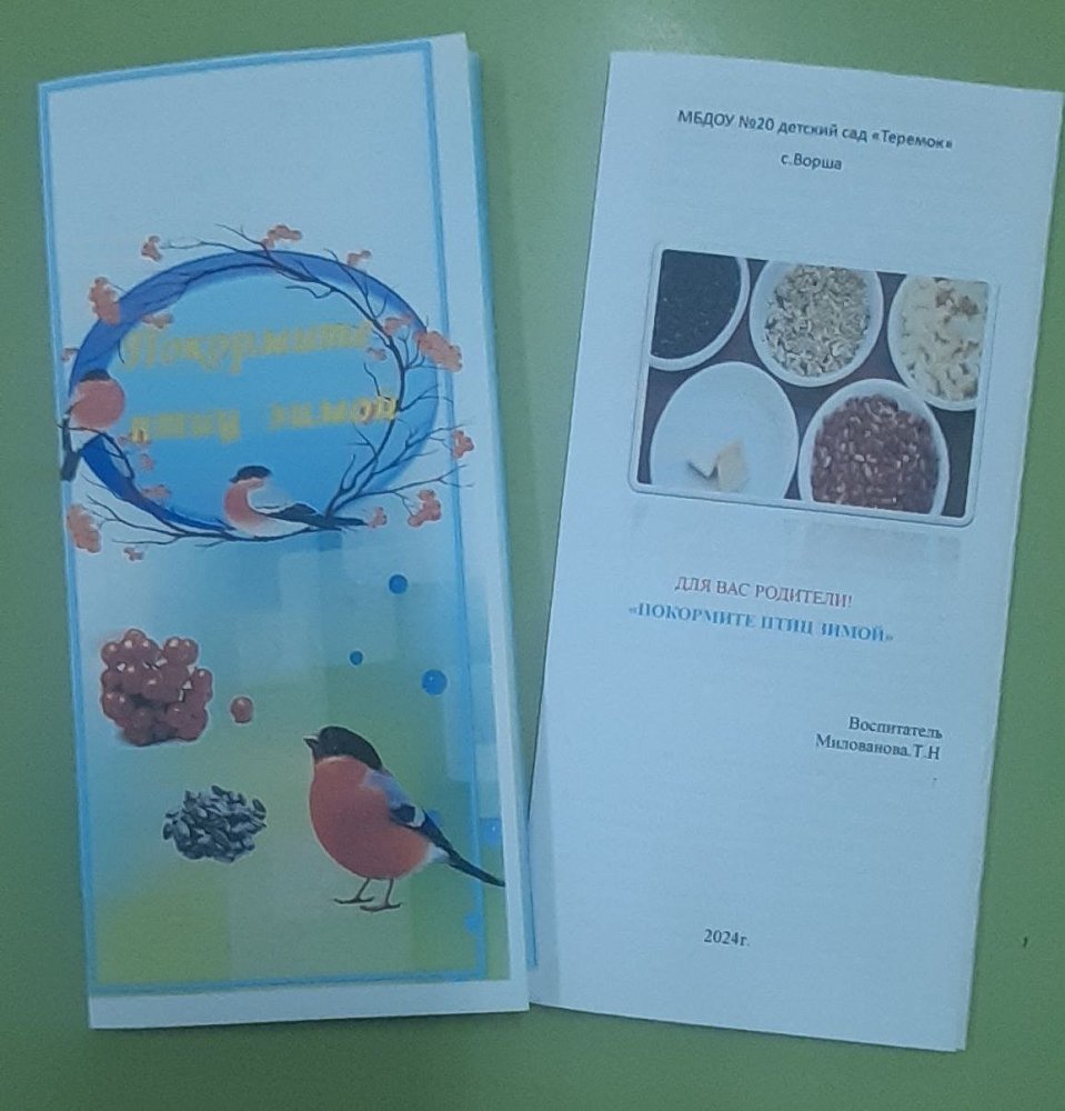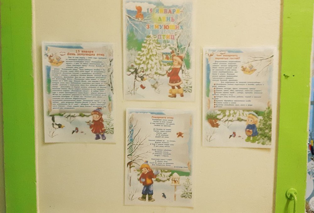 Покормите птиц зимой…Сегодня, 15 января, в нашей стране отмечается добрый экологический праздник – День зимующих птиц. Воспитанники группы детей с ТНР совместно с воспитателем Т.Н. Миловановой провели акцию « Покормите птиц зимой». Для родителей была в холле представлена папка- передвижка и воспитанниками были вручены буклеты « Покормим птиц вместе». Совместно с родителями приготовленные «угощения» для птиц, ребята разложили в кормушки. Во время прогулки расклеили и вручили листовки жителям села « Покормите птиц зимой»!