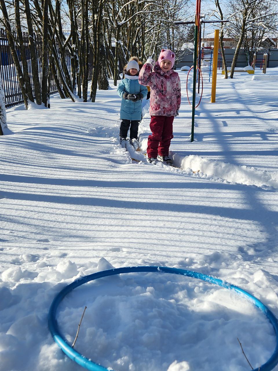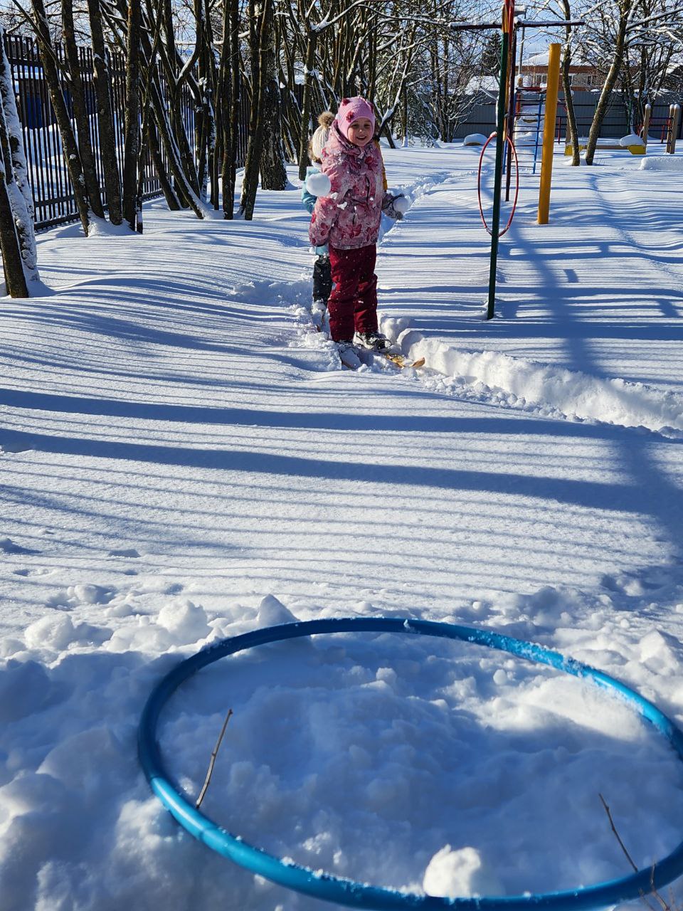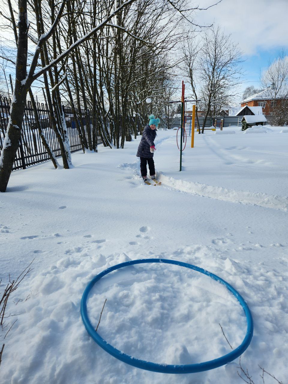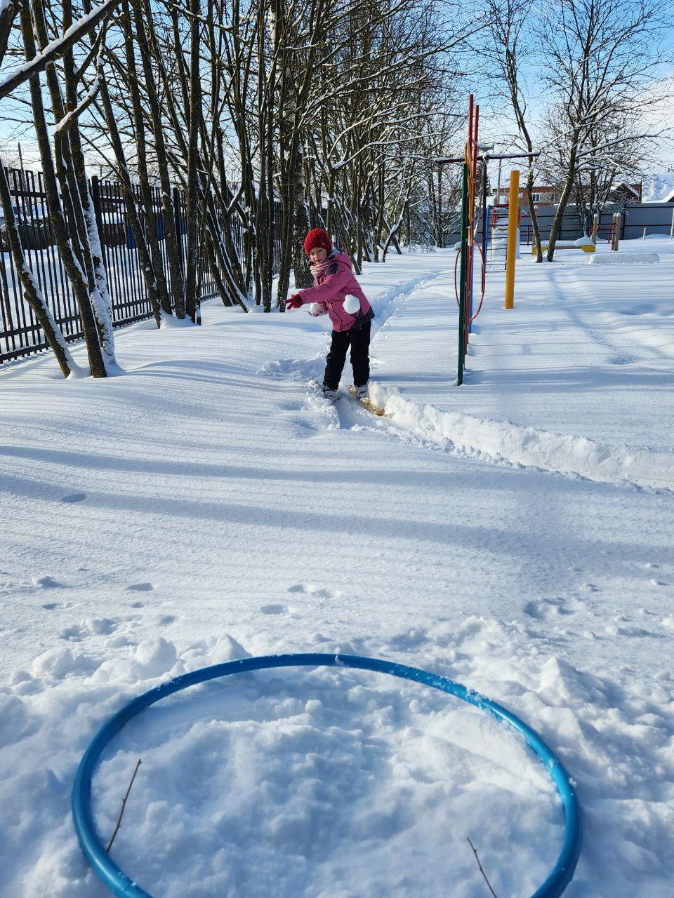 Закреплять навык передвижения по равнине, развивать внимание, меткость, передвигаться по учебной лыжне – в этом нам «поможет» биатлон. Биатлон - зимний олимпийский вид спорта, сочетающий лыжную гонку со стрельбой из винтовки, а поскольку в нашем ДОО винтовок нет, мы заменили метанием снежками.