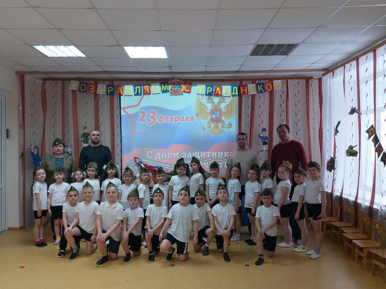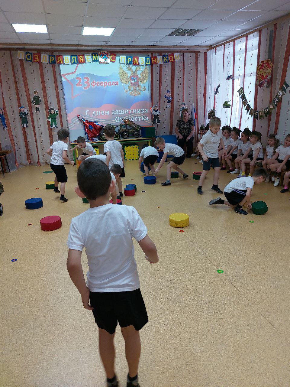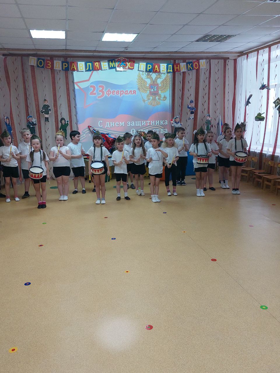 День нашей Армии сегодня,Наши славные воины мужественные и смелые, я думаю наши ребята, тоже хотят быть похожими на них. И для них сегодня прошёл спортивно – музыкальный праздник «Соревнуясь рядом с папой – я готовлюсь стать солдатом».