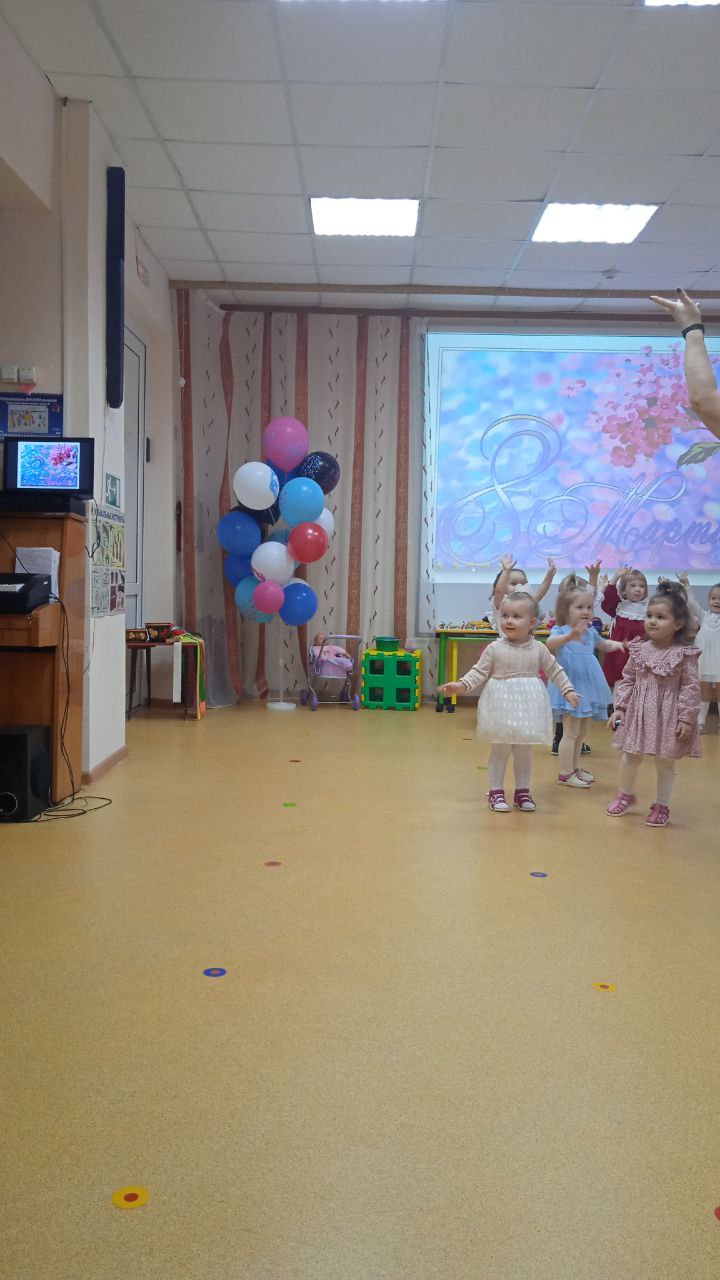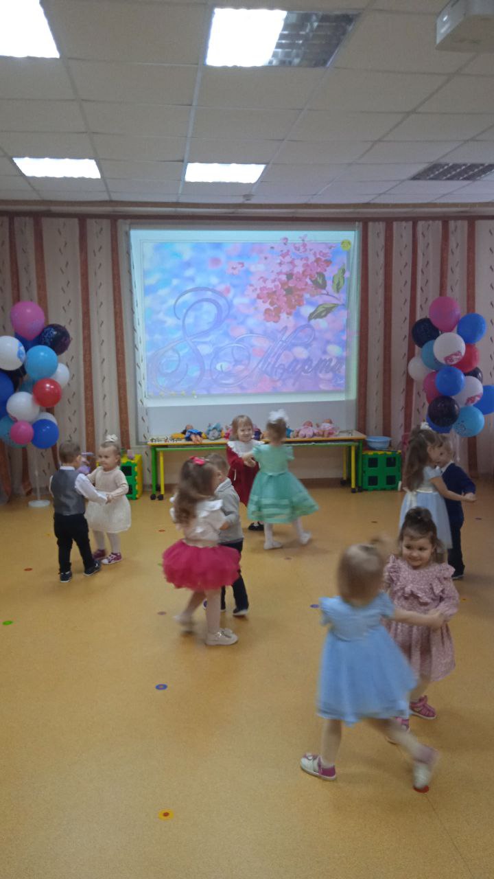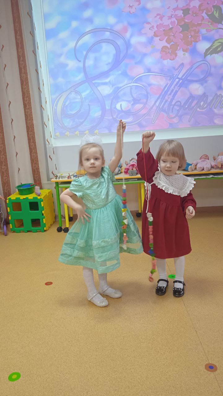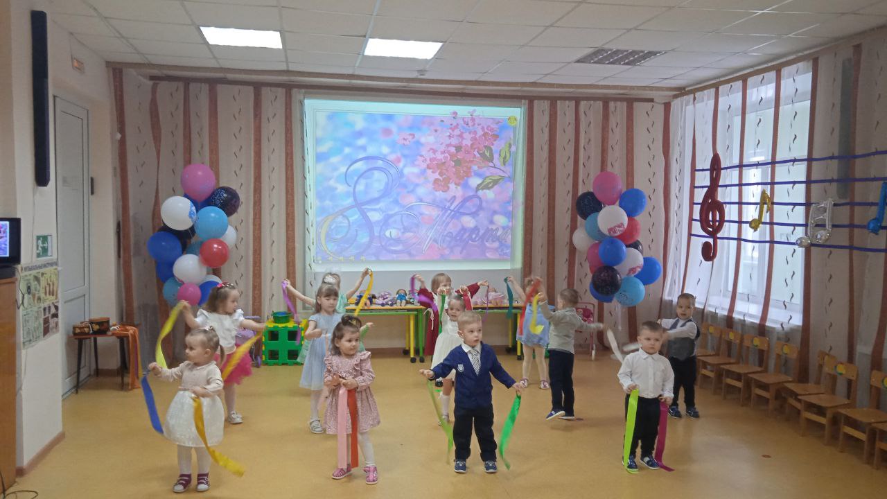 Посмотрите, наши малыши, на весенний праздник пришли! Сегодня в 1 младшей группе прошёл веселый праздник. Воспитанники танцевали, пели песенки про мам и бабушек, играли в игру «Собери бусы для мамы», сыграли веселую мелодию на бубнах.