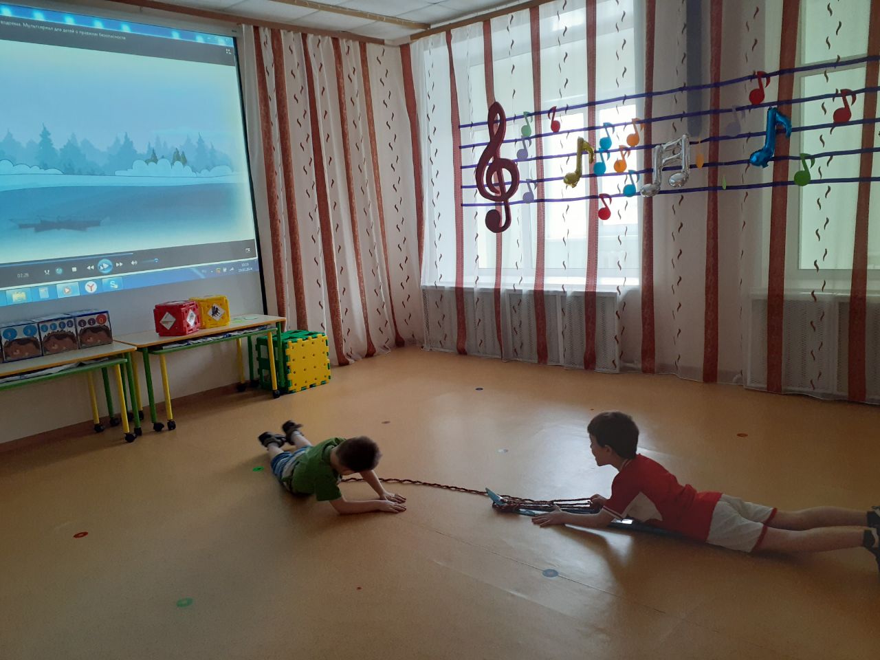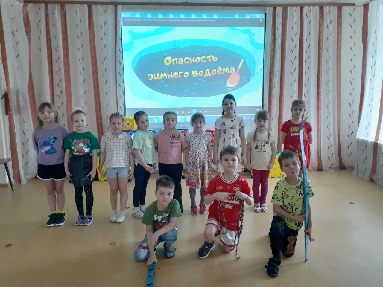С помощью просмотра познавательных роликов довели до сознания детей невозможность беспечного и неосторожного поведения во время ледохода.