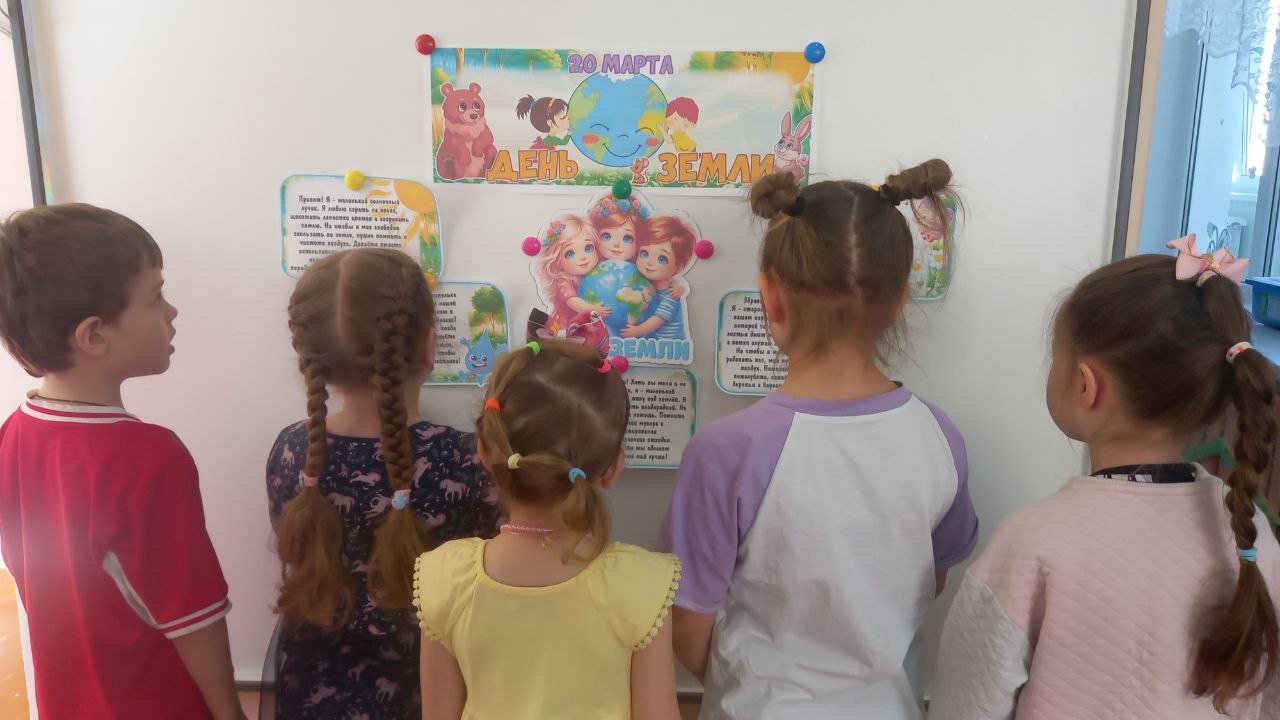 Сегодня поздравить спешит детвораСегодня в группе «Колокольчик» пошел экологический урок. Воспитатель О.А.Пинчук своим воспитанникам дала представление о том, что Земля – общий дом всех людей и всех живых существ. При просмотре познавательного ролика сформировалось у детей представление о том, что природа - основной источник здоровья и благополучия людей, что человек – разумный хозяин, отвечает за все на Земле. Закрепили знания о глобусе – модели планеты Земля.