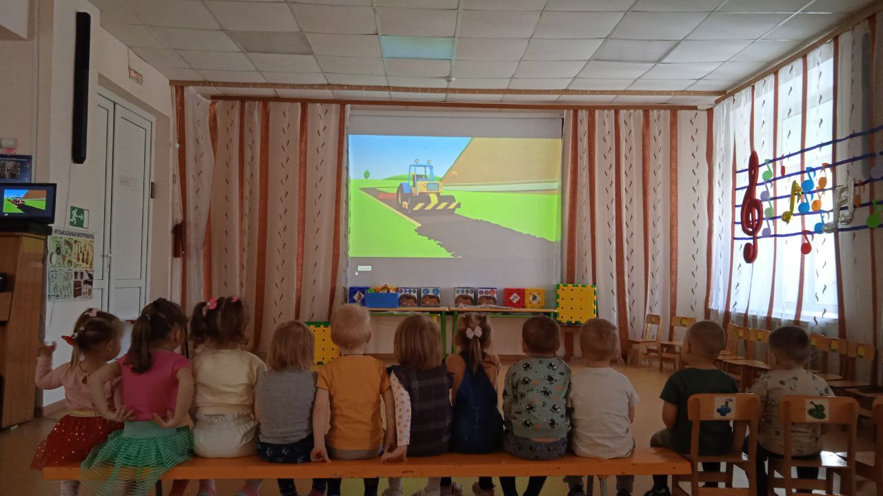 Воспитанники познакомились с новыми словами: автовоз, автомастерская, асфальтоукладчик, автомойка, каток. Закрепили полученную информацию просмотром развивающего мультфильма « Машины помощники».