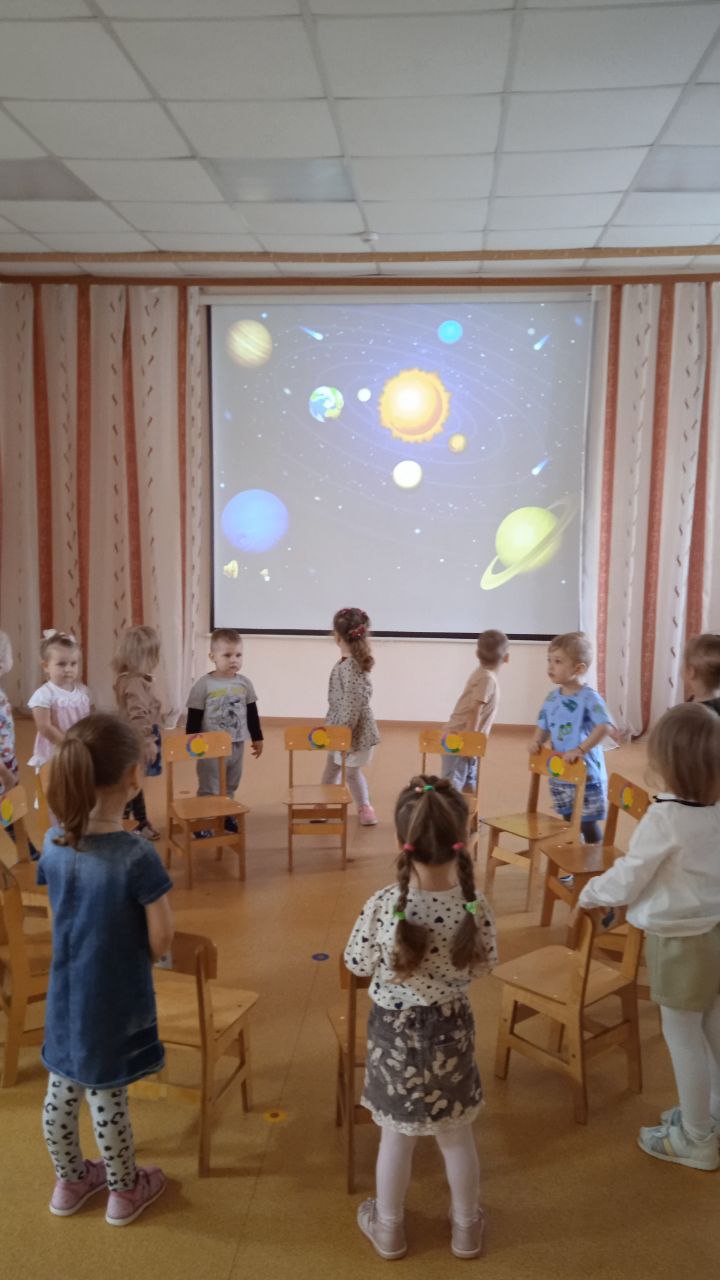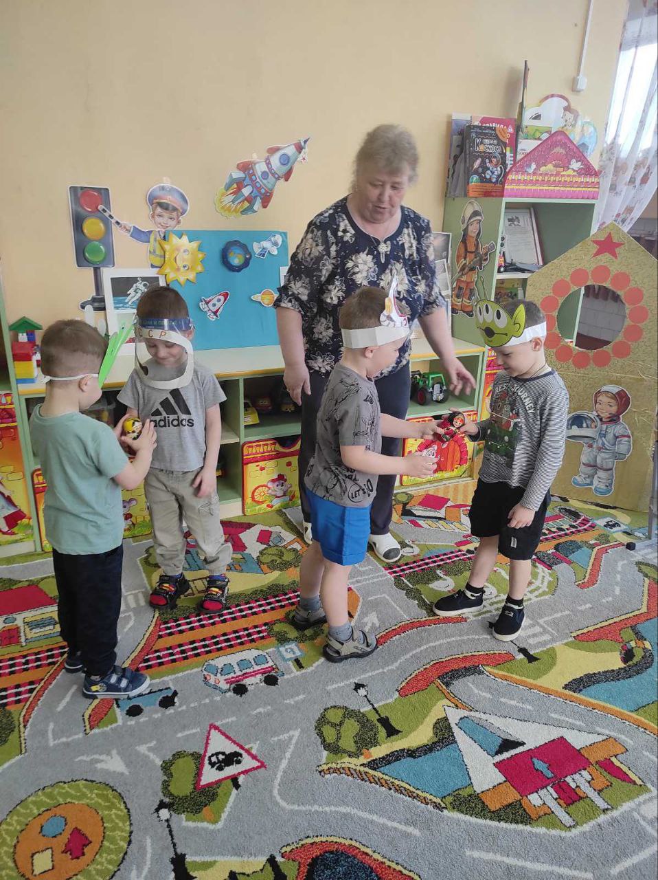 В старшей группе воспитанники выполнили аппликацию «Ракета» и в процессе экспериментальной деятельности дети узнали о форме планет, их размерах, о движении вокруг своей оси. Воспитанники в свободное время удовольствием играют в подвижные игры «Ракета», «Полет на Луну», «Небо и земля», «Марширующие звездочки».