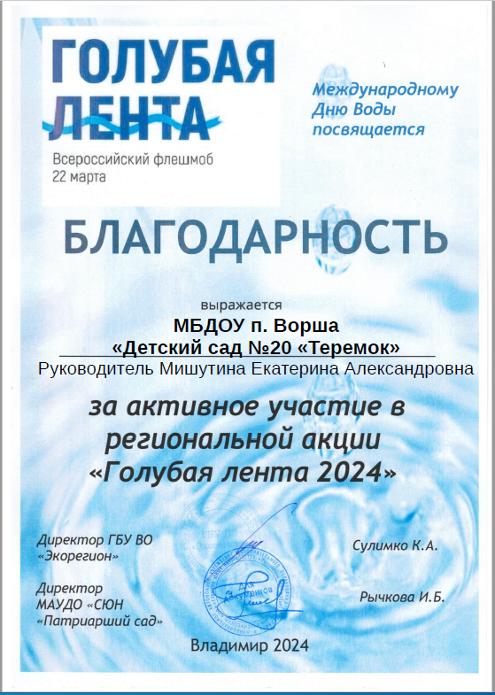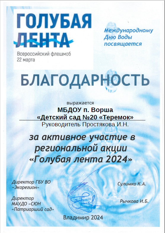 #Берегитеводу. Акция "Голубая лента" Благодарность за участие.