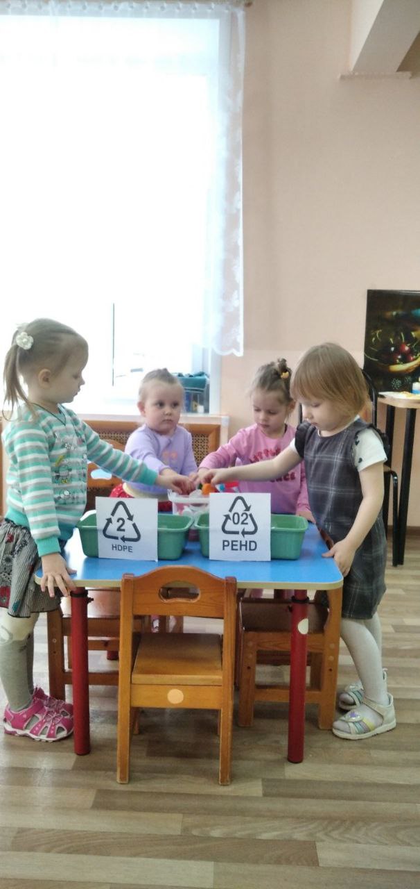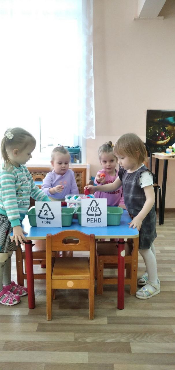Воспитанники 1- младшей группы собирают крышки и сами сортируют их.