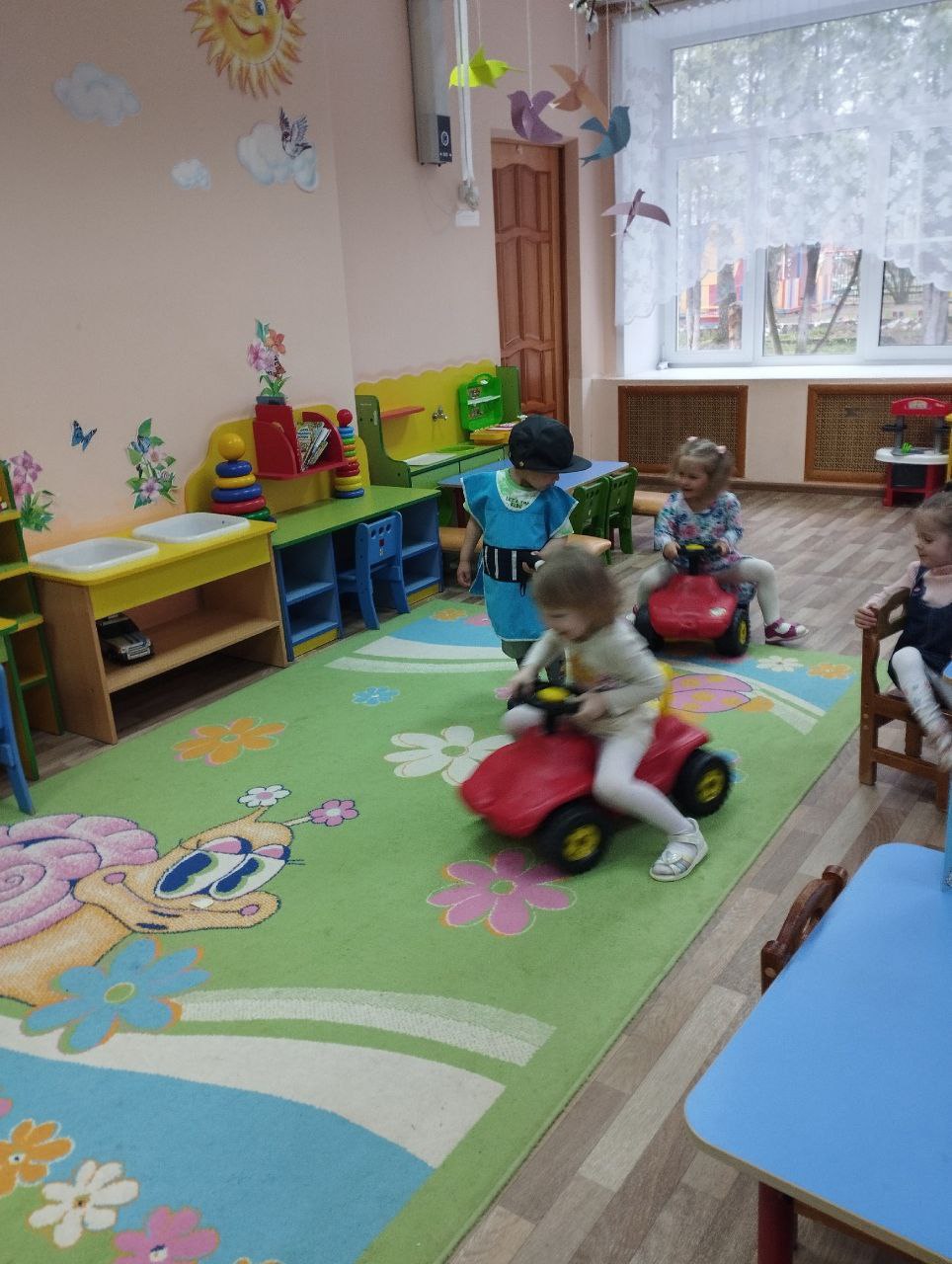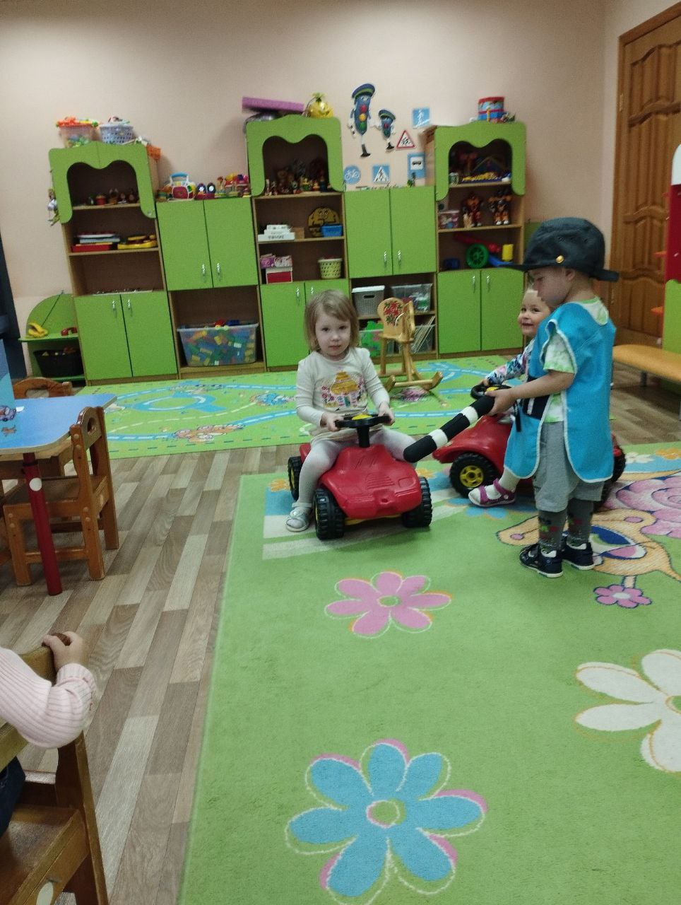 И сегодня в рамках совершенствования работы по профилактике детского дорожно-транспортного травматизма в первой младшей группе воспитанники получили элементарные знания по правилам дорожного движения. Во время сюжетно-ролевой игры малыши совместно с воспитателем Шикериной Д.М. познакомились с некоторыми видами транспортных средств: легковая машина, грузовая (большого размера), автобус. Закрепили первичные представления о работе водителя.