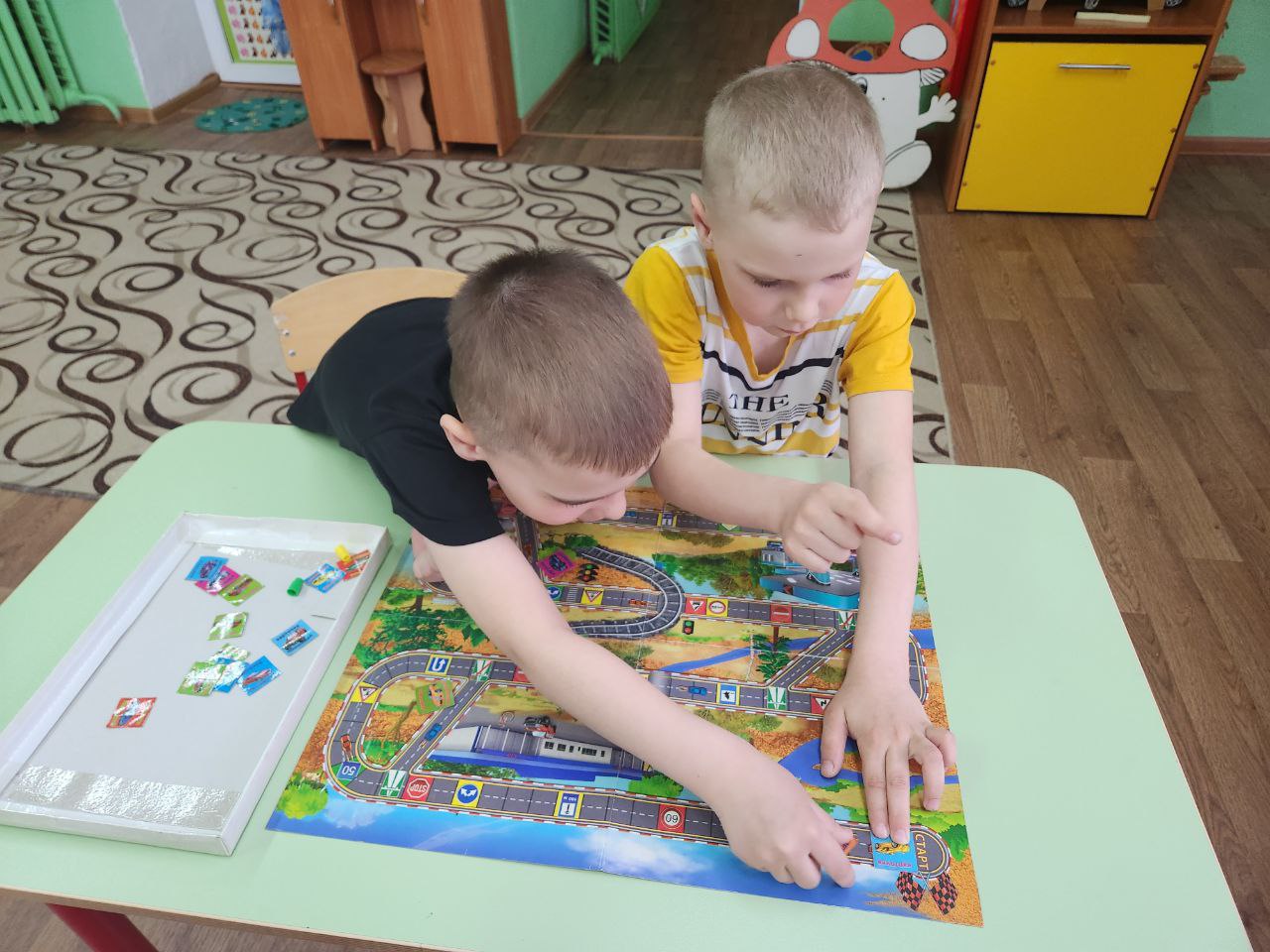 Воспитанники с большим удовольствием играли в шашки, шахматы, настольные игры «Бродилки», собирали пазлы и конструктор «Лего».