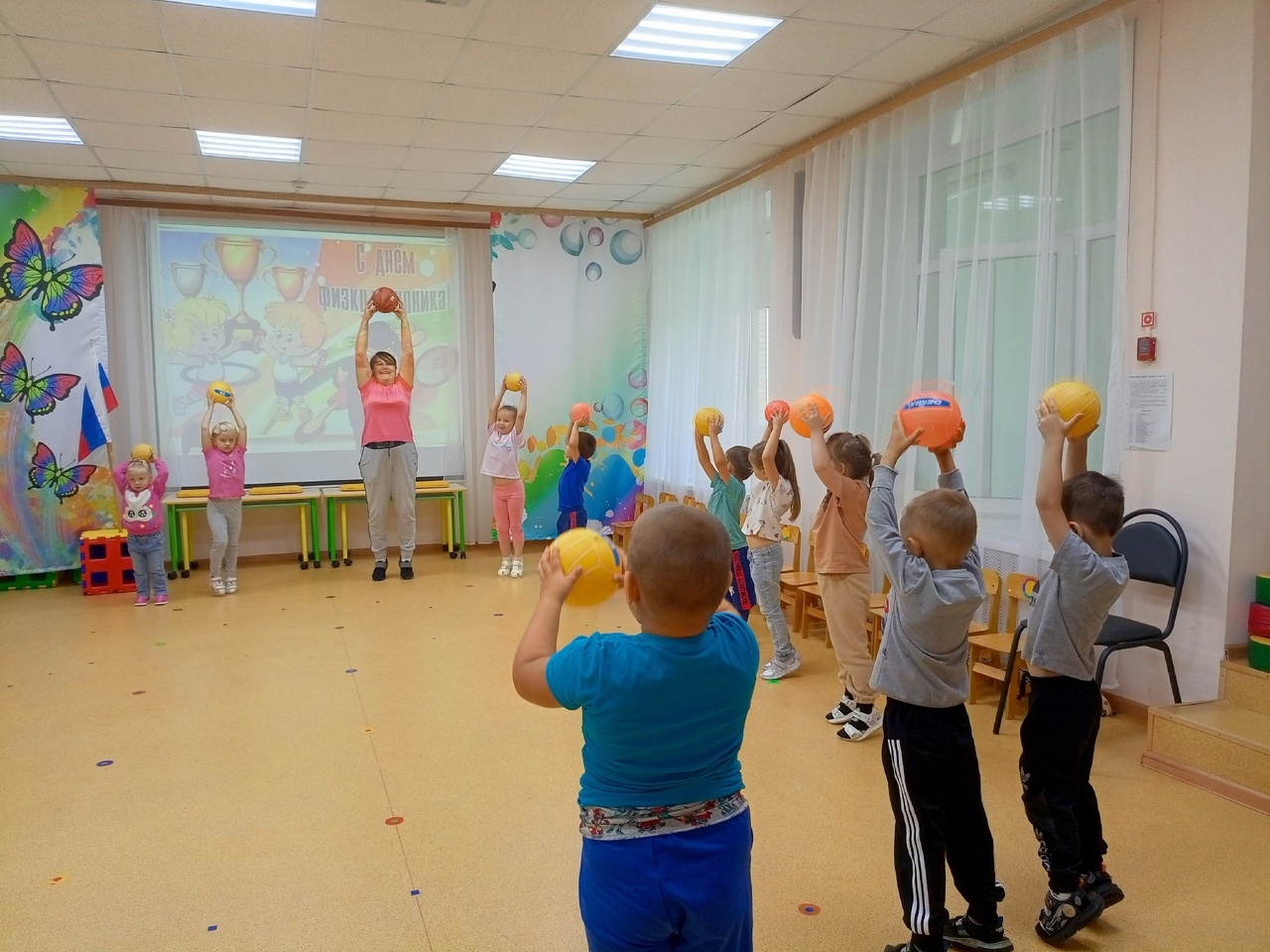 День физкультурника в детском саду прошел как всегда весело и задорно. Цель мероприятия - пропаганда здорового образа жизни и приобщение детей к занятиям физкультурой и спортом. К участию были приглашены дети старшего дошкольного возраста. Праздник начался с торжественного построения. Дети под руководством инструктора физкультуры сделали разминку, которая прошла под зажигательную музыку. С большим интересом прошли спортивные игры и эстафеты для детей. Мероприятие было насыщено двигательной активностью детей, смехом, радостью и весельем.